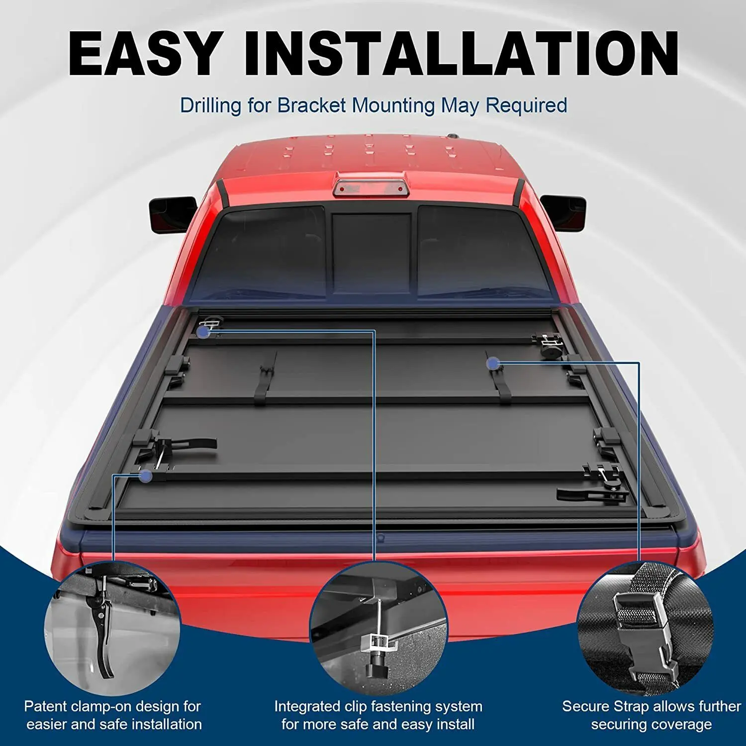 ·Straps hold the cover in the open position for safe driving
