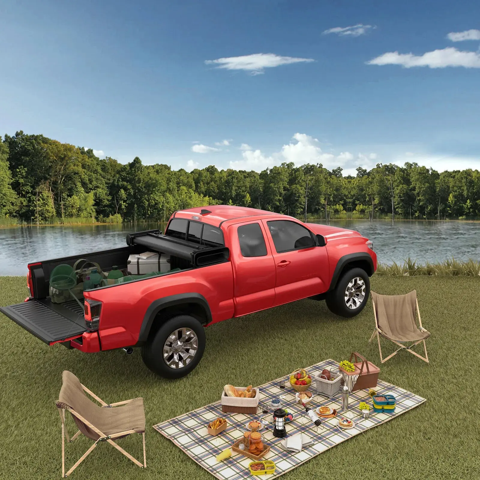 With durable tear-resistant vinyl and rustproof heavy-duty aluminum, the MOSTPLUS fold soft tonneau cover protects bed items from rain, snow, UV rays, and temperature changes, among other elements. It attaches to your bed with hand-tightened clamps, requiring no tools for installation. Allows 2/3 bed access when folded and removable in minutes. And nylon straps hold the cover in place while open for safe driving.