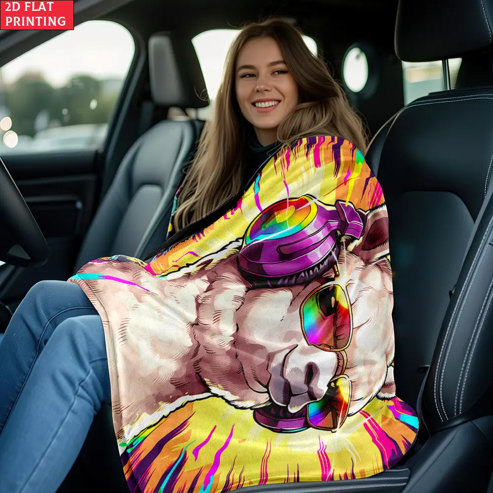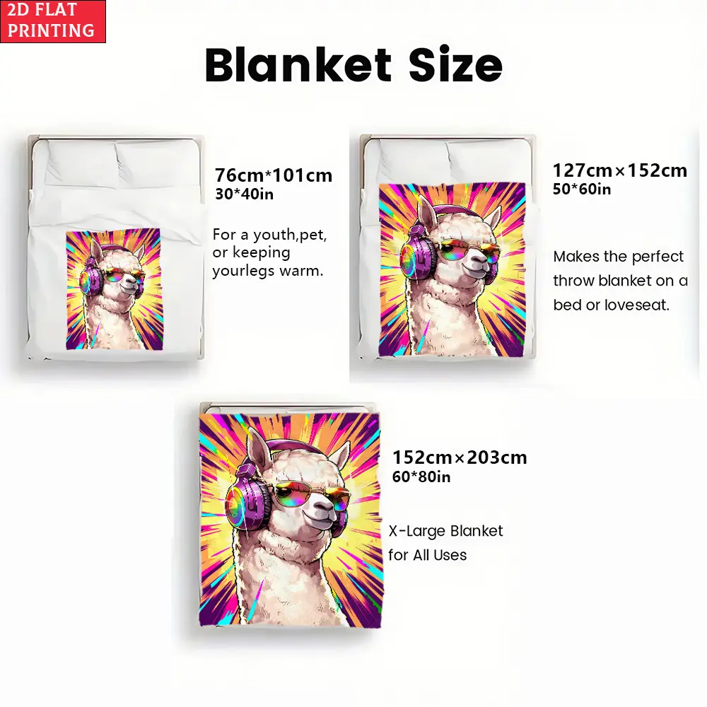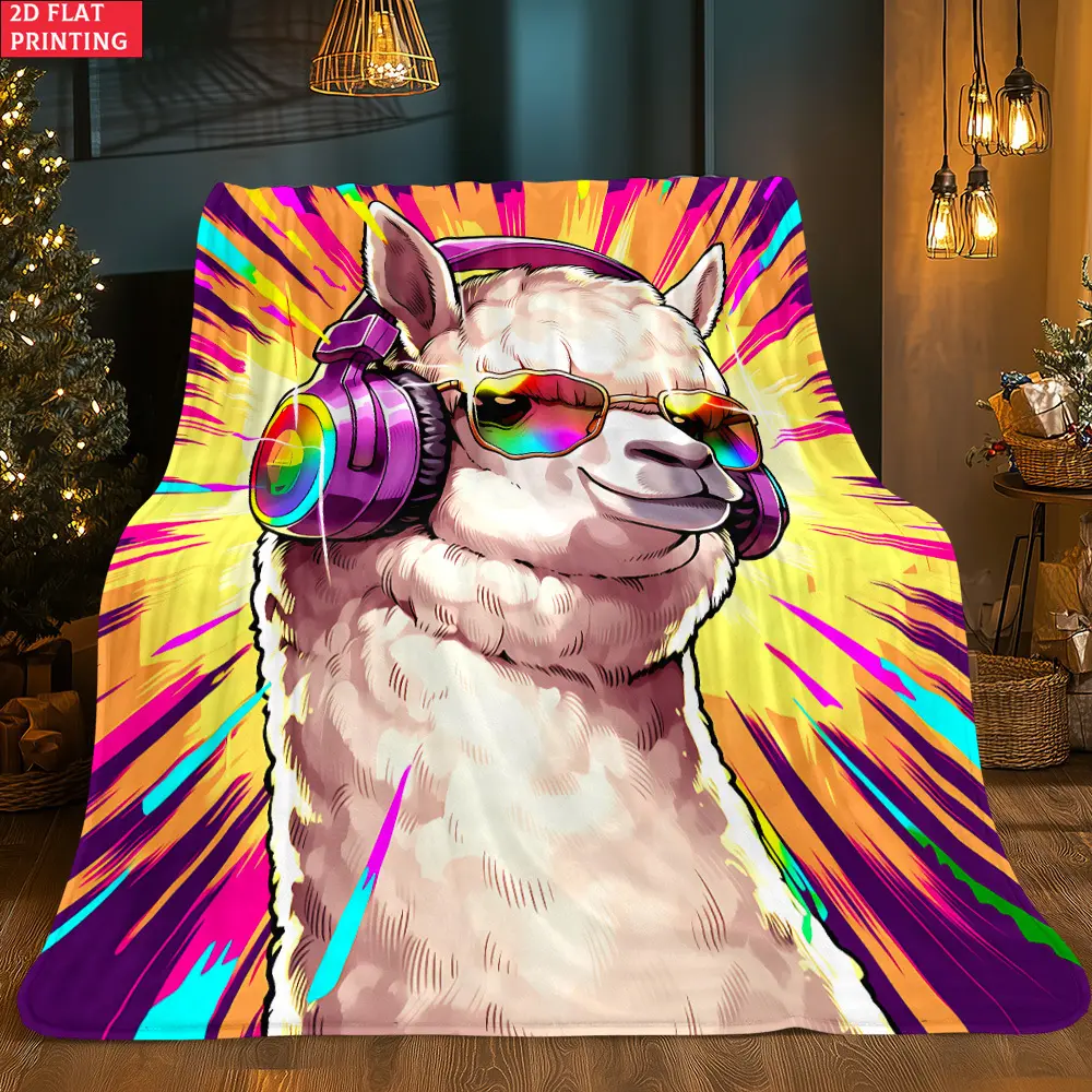 2D Flat Blanket with HD Print of Llama Musical Art, 1 piece. Soft and Warm Flannel Blankets for Travel, Camping, Sofa, Living Room, Armchair, Chair, Bed, Bedroom. Gift for Family or Friends 280g. Applicable to All Seasons., Flat 2D