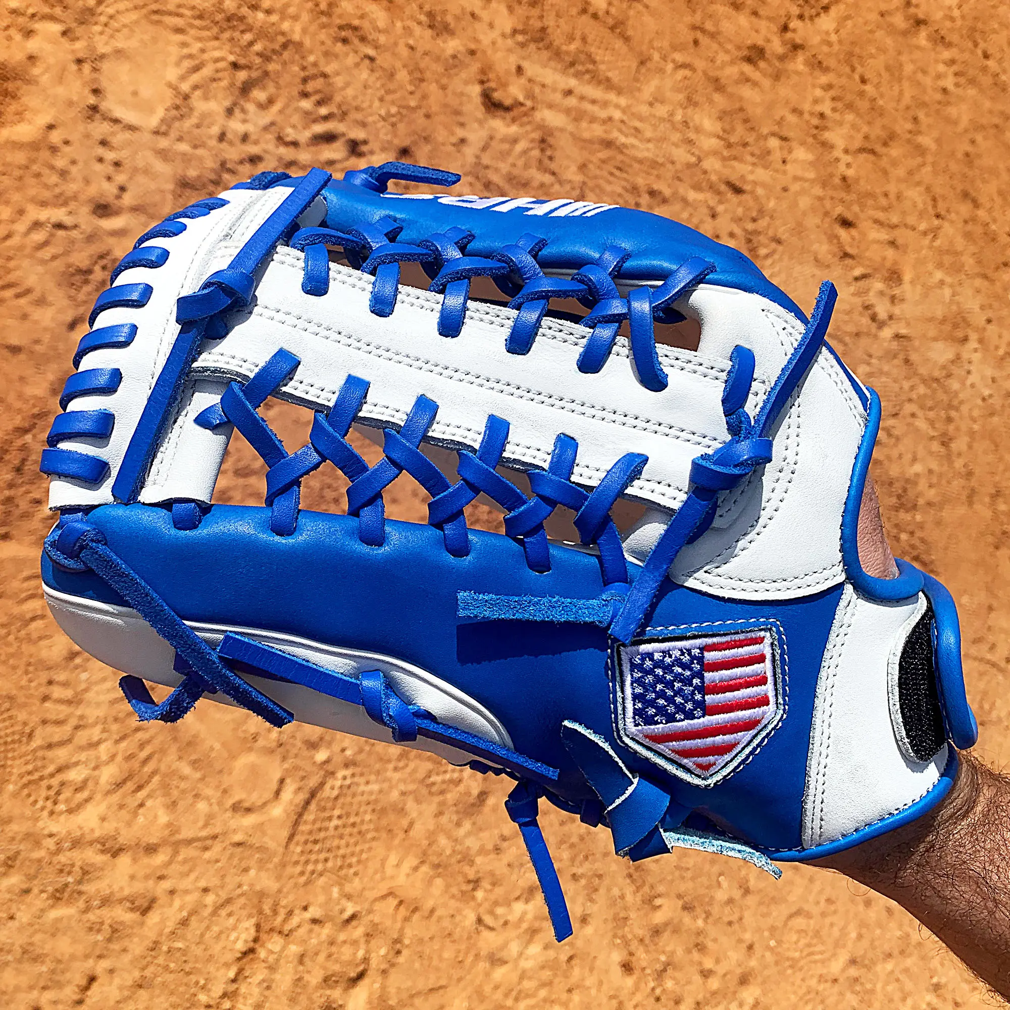 The 12.5 inch softball mitt is a showstopper with our most popular modified trap web, and blue and white colorway