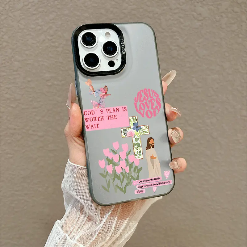 Softcase for iPhone 17 16 E Pro Max 15 Plus 14 13 12 11 XS XR Soft Pink Jesus Faith Art Premium Shockproof Silicone Lightweight Anti-Scratch Protective Cover