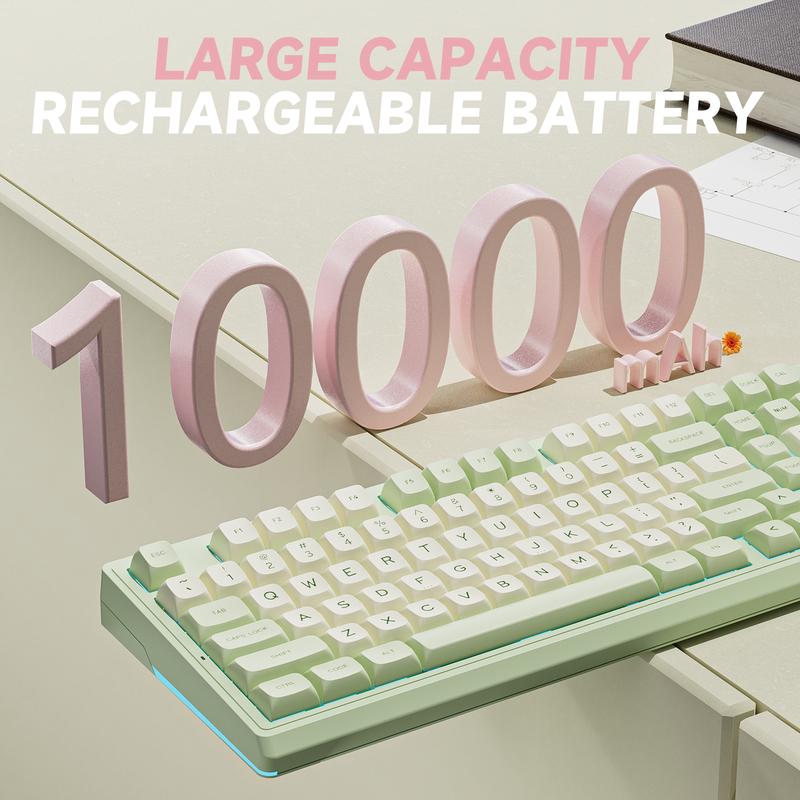 ·Triple-mode & Long-lasting: KI99 Pro mechanical keyboard supports BT5.0/2.4G/Type-C connections (10m range) and works with Windows/macOS/PC/laptop/smartphone. 10,000mAh battery minimizes charging for reliable work/gaming performance.