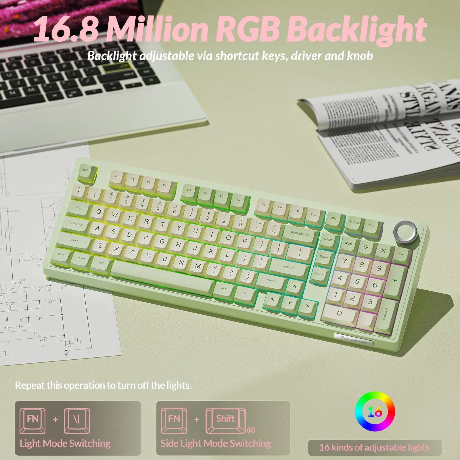 ·RGB Lighting: this colorful keyboard full-key RGB plus side light bars with 16.8 million colors. Adjust modes, brightness, and speed via software or hotkeys to match any setup.