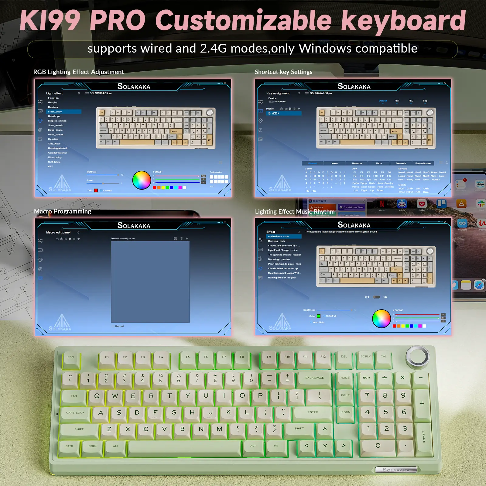 ·Customizable Software: KI99 Pro quiet keyboard supports Program keys, adjust RGB effects, and macros via driver. Create shortcuts for complex tasks without affecting basic functions.
