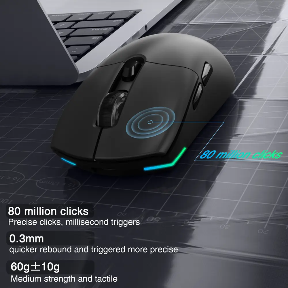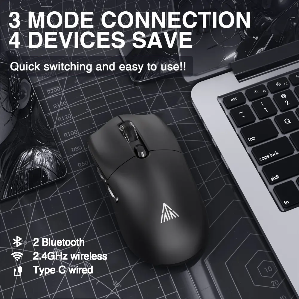 ·3 Mode Wireless Gaming Mouse:This wireless gaming mouse adopts advanced USB-C wired,2.4GHz wireless,2 BT 5.1 transmission technology. Users can save 4 devices,fast response and easy switching.SM800 mouse compatible with your PC,Laptop,Macbook,Mobile Phones