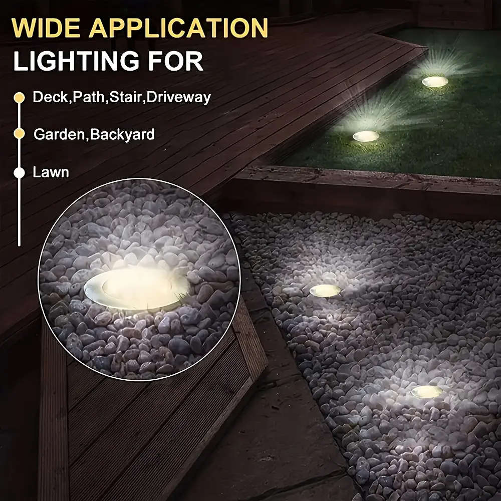 2025 Emergency Solar Outdoor Lights, LED Solar Garden Lights, IP65 Waterproof, Warm White Super Bright Underground Lights for Garden & Walkway & Patio & Pathway & Lawn & Driveway & Deck & Pool & Outdoor (Pack of 8/12)