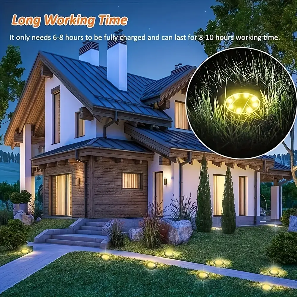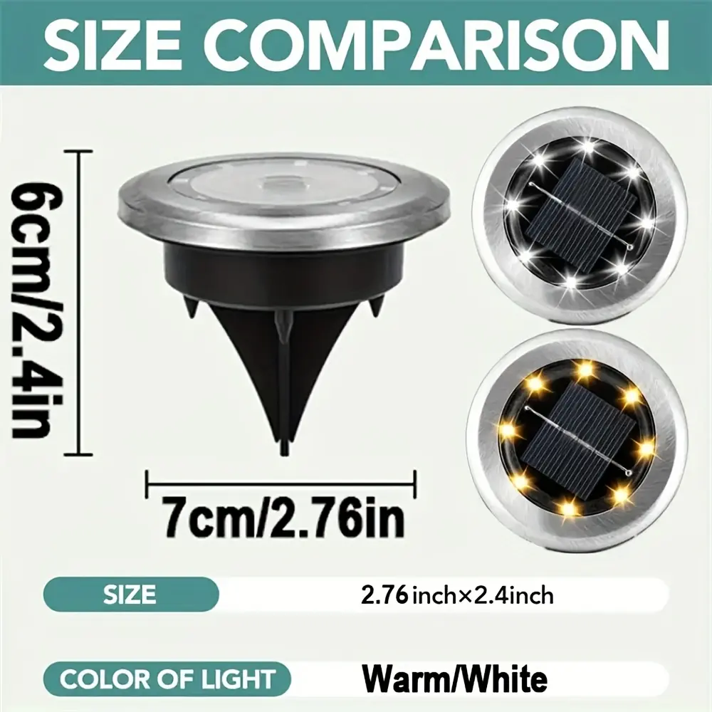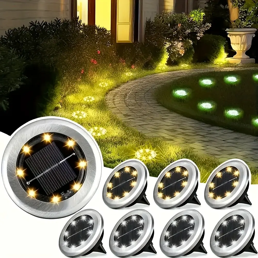 4/8/12-pack Solar 8LED Ground Lights - Solar outdoor step lights, IP65 path lights, garden lights, Outdoor Waterproof Lights, for steps, paths, lawns, and landscape lighting outdoors - Warm white/cool white options available