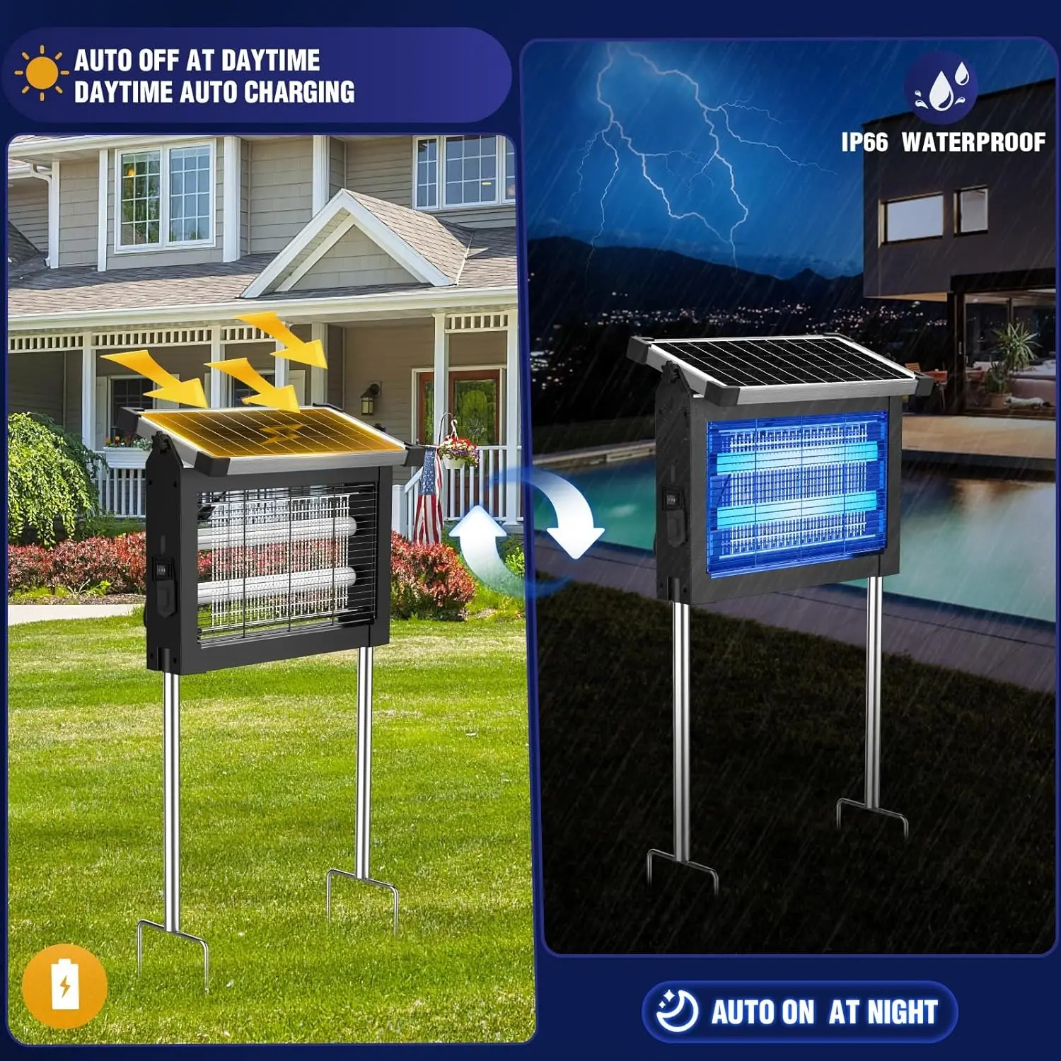 ·Upgraded Solar Bug Zapper: This advanced solar-powered bug zapper, uses a special light wavelength to lure and eliminate pests with a 4500V grid. Safer and more eco-friendly, it comes with a safety net to protect kids and pets from shocks. This powerful device can keep an area of 2100 square feet free from flies, mosquitoes, wasps, moths, and other flying insects.