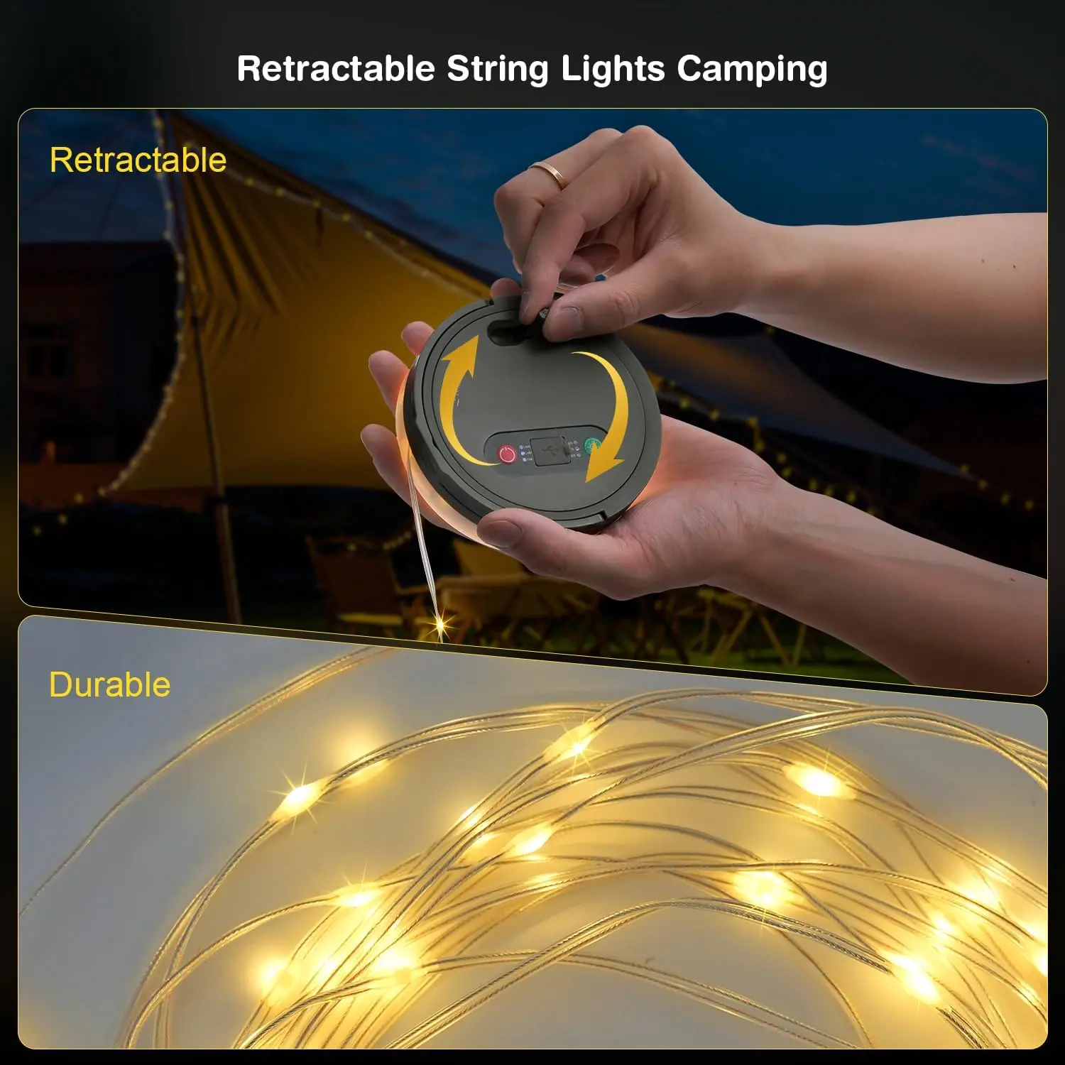 Portable and Convenient: The tent lights are ultra-portable and space-saving. With a quick twist of the handle, you can effortlessly store the light strip in just a 30 seconds, making it easy to carry in your backpack and start your journey anytime. Camping Essentials Gear Lamp Light it's Ideal for camping, fishing, hiking, emergency lighting, and more
