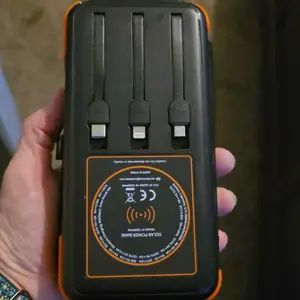 Built-in 4 Charging Cables: This solar charger has 3 built-in output cables (Type C, Lightning and Micro USB) and 1 USB-A input cable. You don't need to carry charging cables for both output and input. Say goodbye to the trouble of carrying multiple charging cables!!!