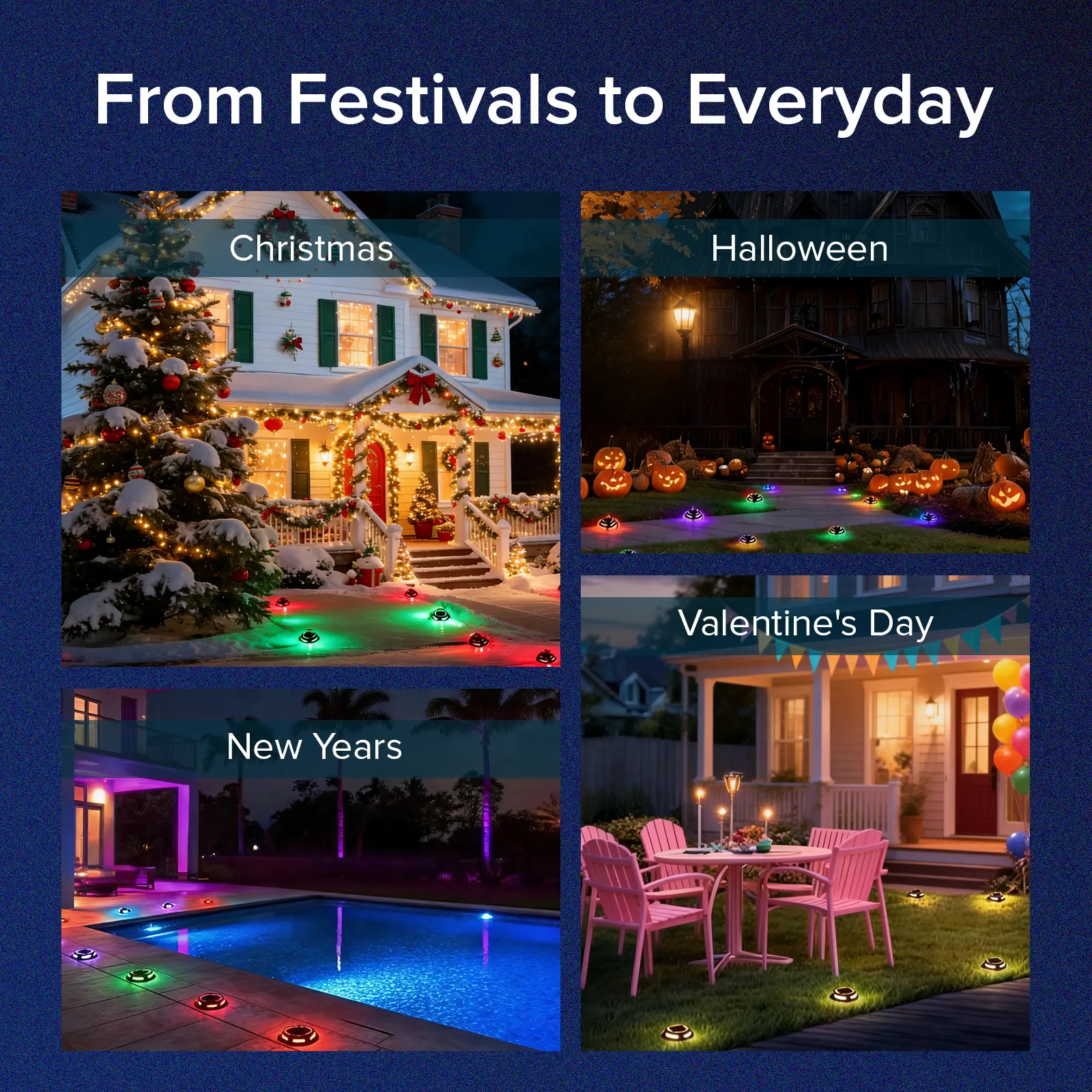 Quick to install with screws or ground stakes. No wiring, no electricity bills. Ideal for gardens, driveways, walkways, decks, docks, and other outdoor areas without power supply.