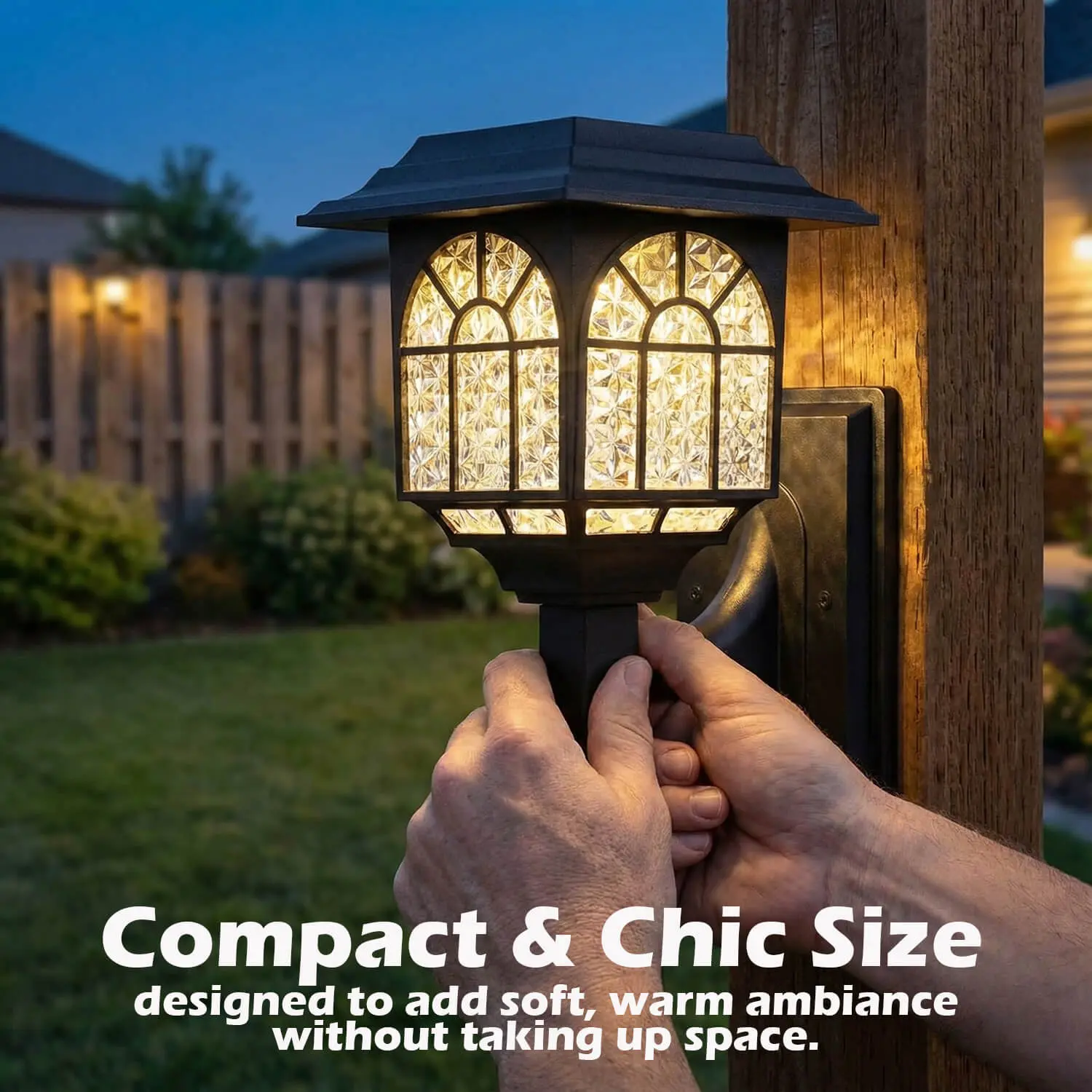 Perfect Fit for Many Spaces: Sized at 6.5 x 4.3 x 7.7 inches, these lights suit most post sizes and surfaces. Hang them on fences, railings, garden walls, or place them on flat surfaces like tabletops. Great for patios, front doors, backyards, and even playhouses.