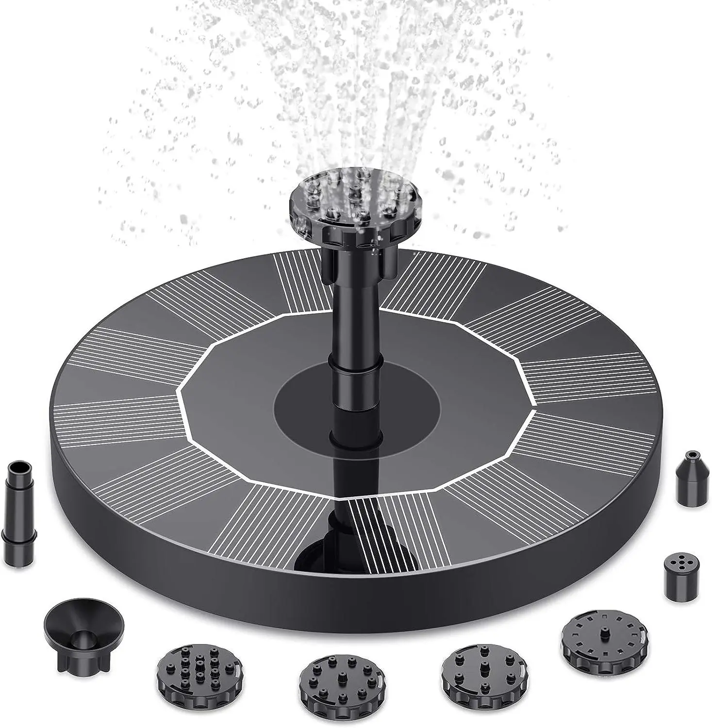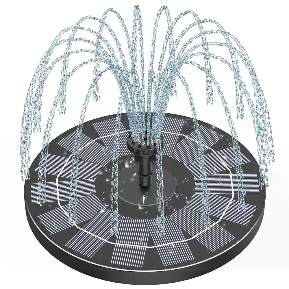 ·High Efficiency Solar Water Fountain: The solar fountain pump powered by solar energy. It works in 3 seconds in sunny places. The high quality bird bath solar fountain pump adds vitality to your garden and provides a good source of water for your bird friends in the summer.