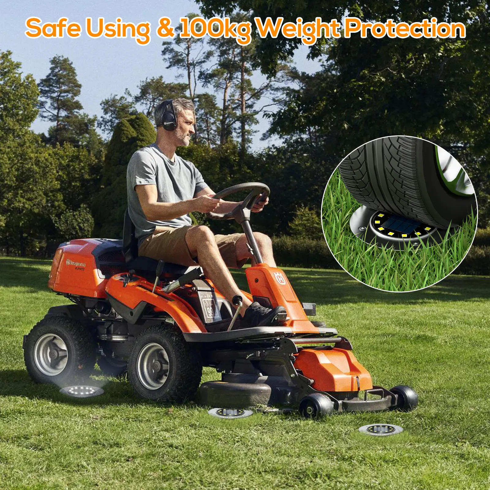 【Easy to install】It only takes a few seconds to strip the plastic from the solar ground lights, install the bottom spikes, and flip the switch on the back. This solar garden light comes with stake tips that you can use to mount it in your yard or place the solar ground lights on a flat area. The maintenance-free solar fence lights are ground designed so you don't have to take them out when using the mower. (Note: Please loosen the soil beforehand or dig a suitable hole for the spikes.)