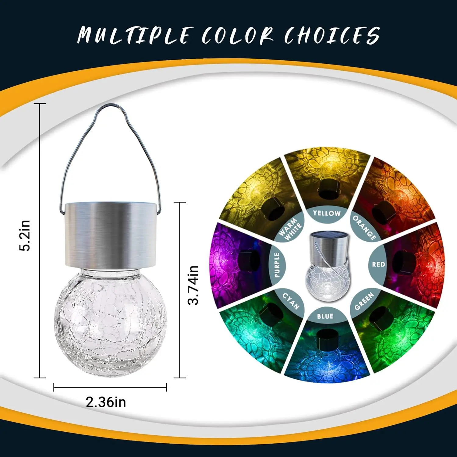 ¡ăPremium MaterialăFeaturing a shimmering crackle glass globe, a sturdy stainless-steel hook and a bright color changing LED, add a superior light effect to your garden.