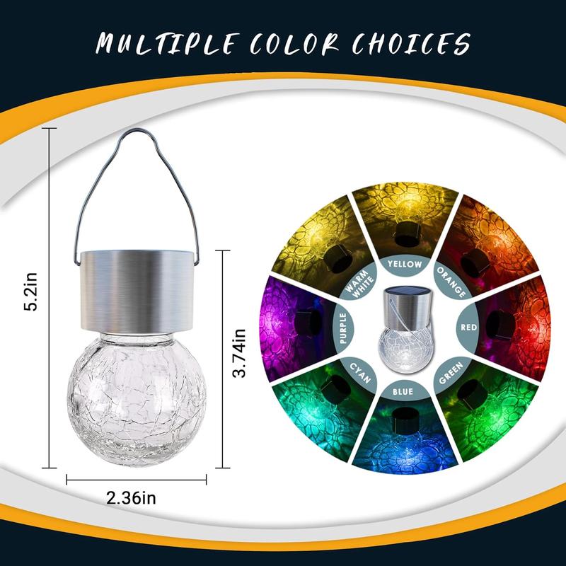 ·ãColor Changing Hanging Solar LightsãCrackled glass solar lights with 4 color-changing, which makes these patio lights unique!