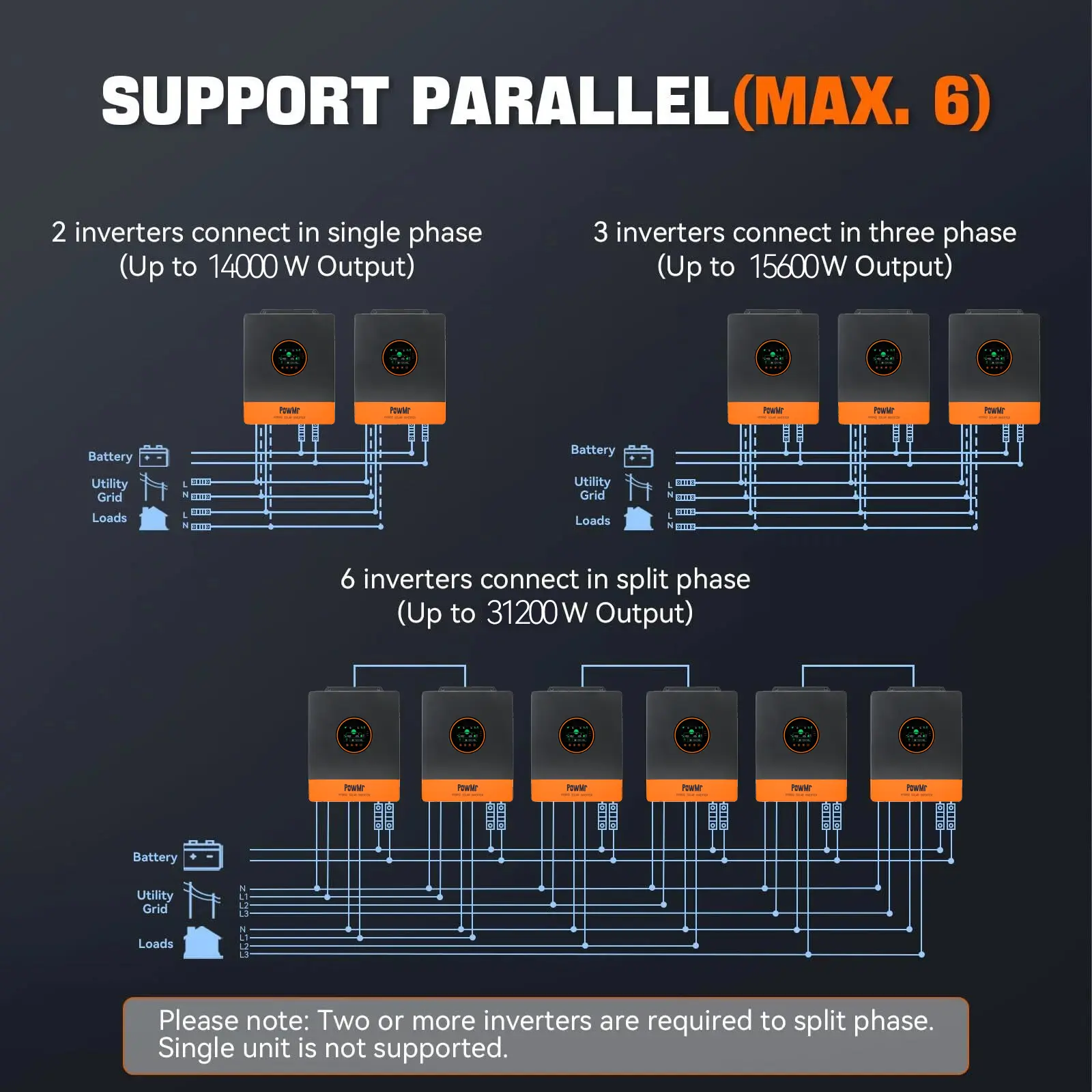 ·Expandable to 31.2 kW with 6-in-1 parallel kit