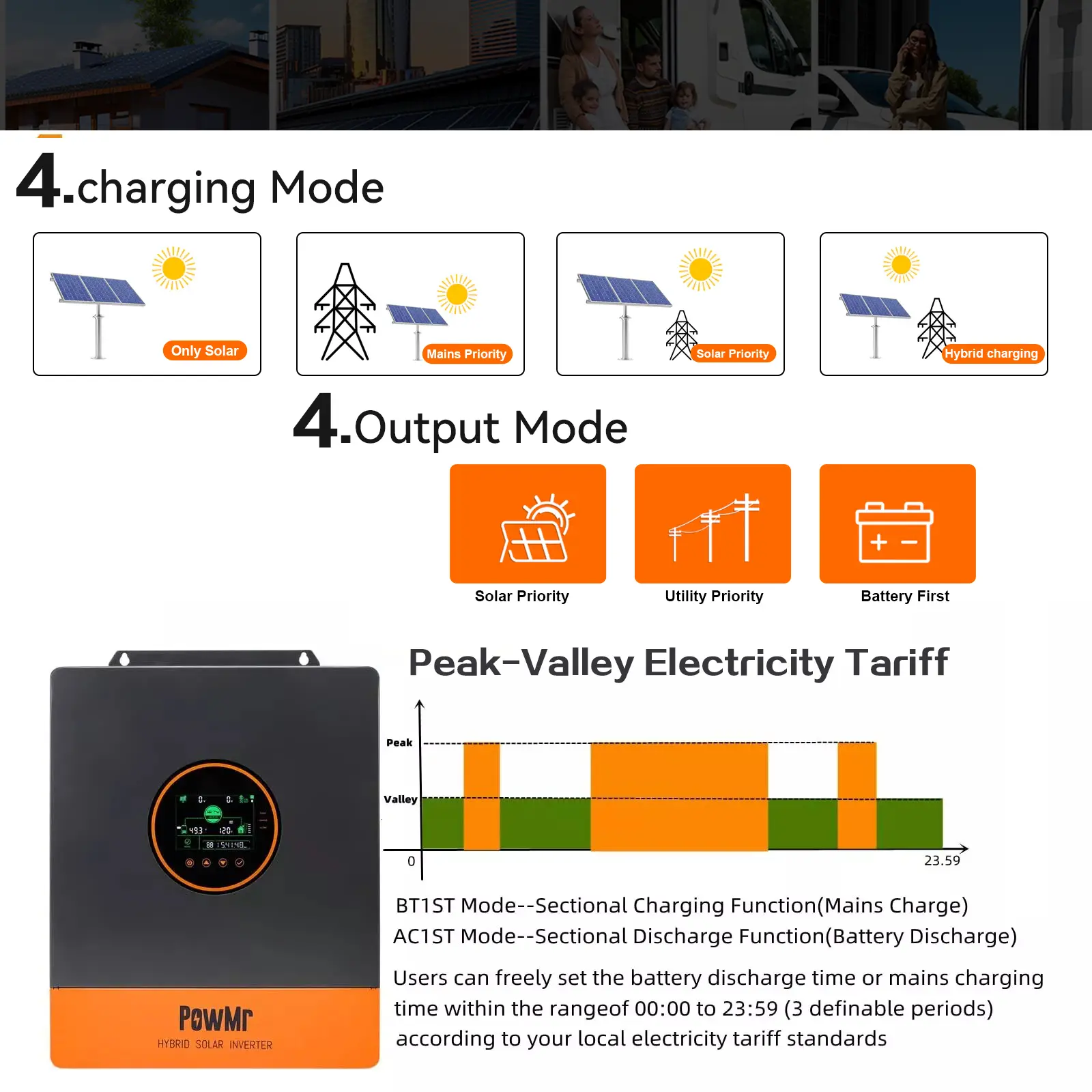 ·5000 W split-phase inverter with 4 charging modes + 2 output modes