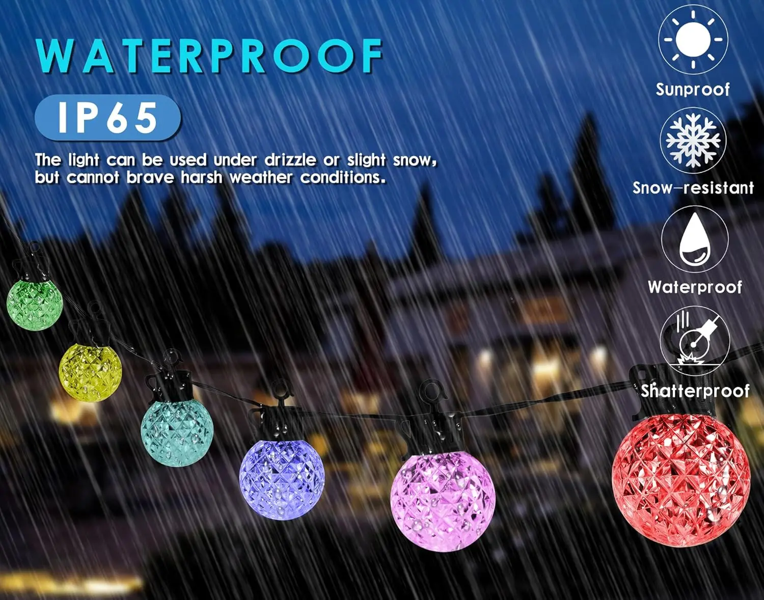 ·Solar Powered & High-Quality Construction: Utilizes solar energy for efficient power use, complemented by durable and safe materials that ensure longevity and reliability in all weather conditions. Each bulb socket features a convenient hook for easy installation.