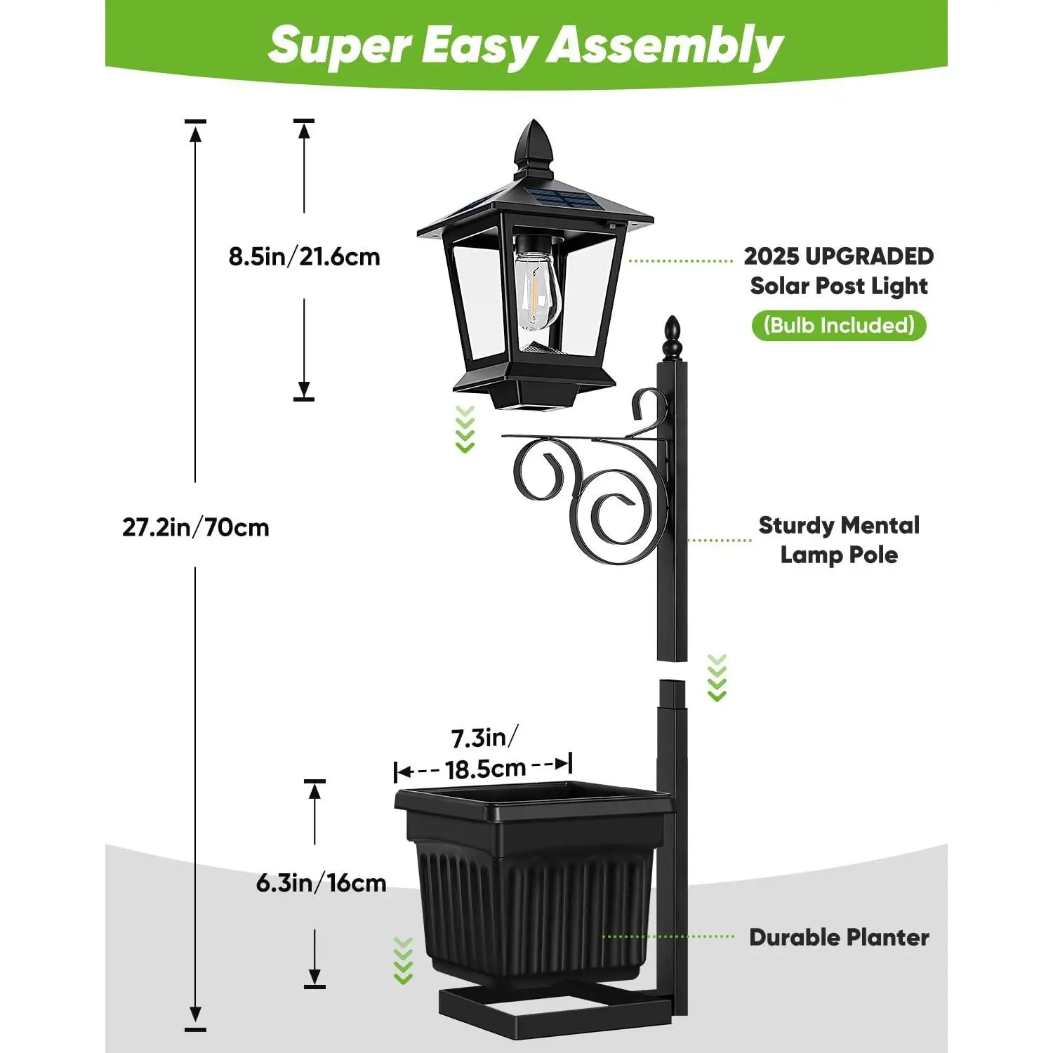 These solar lamp with planter require no wiring, no electrician, and no complicated setup.