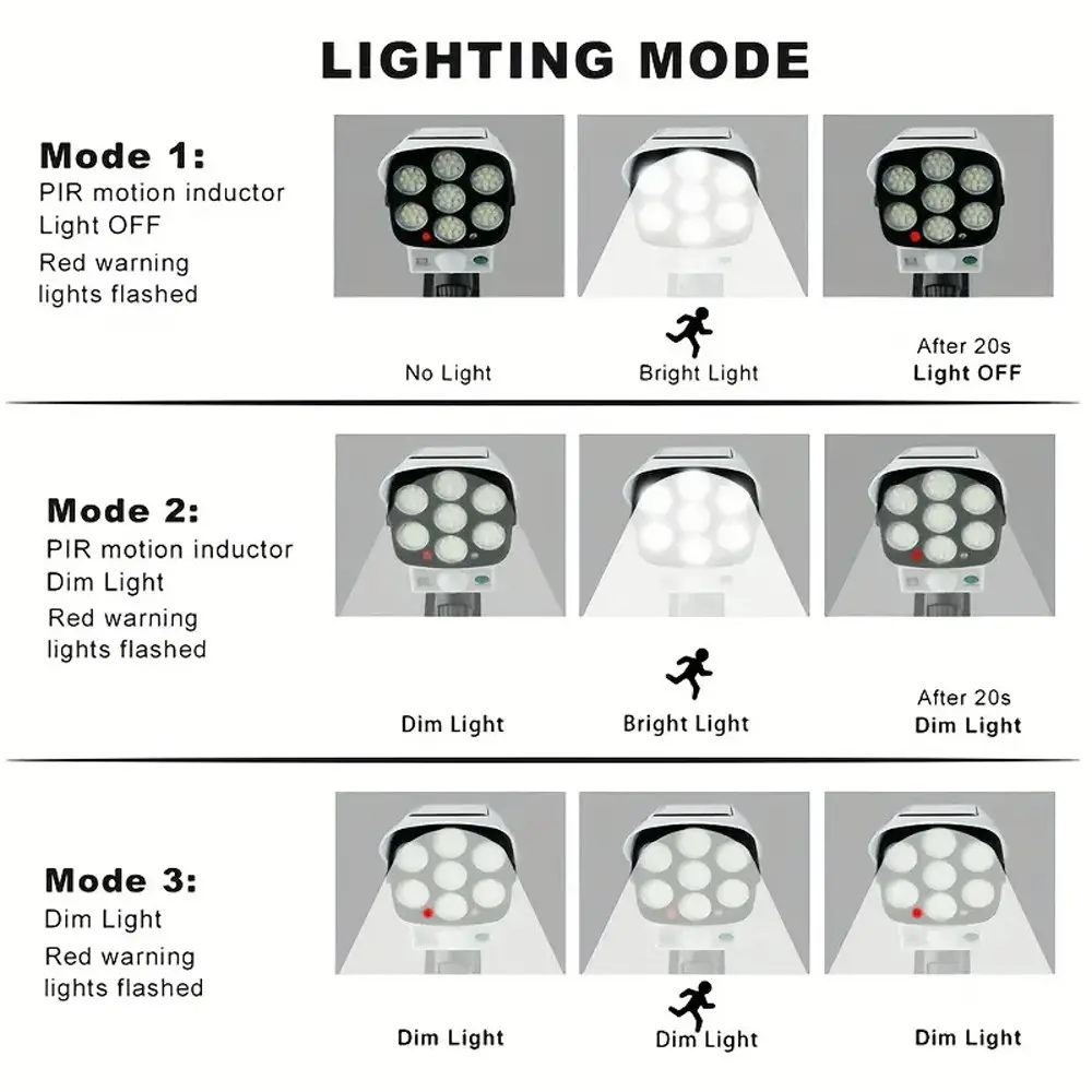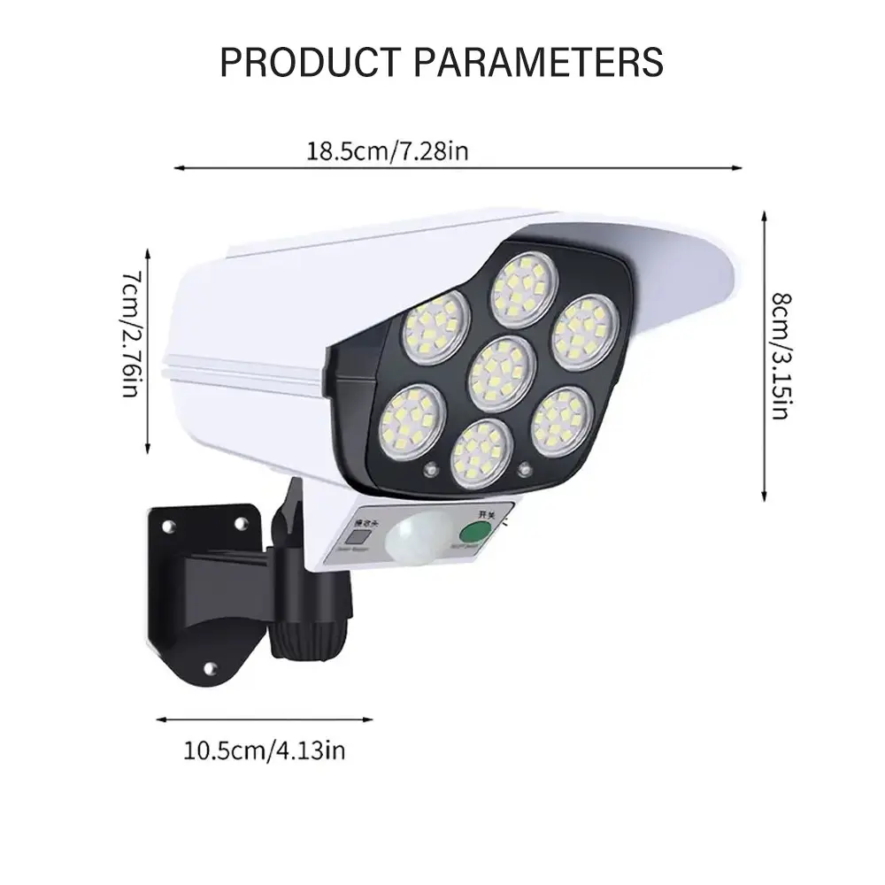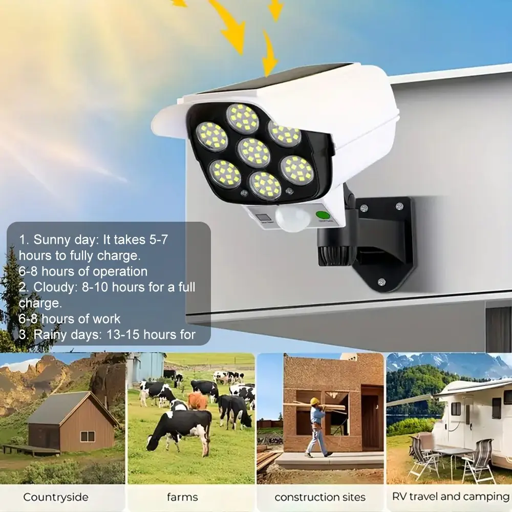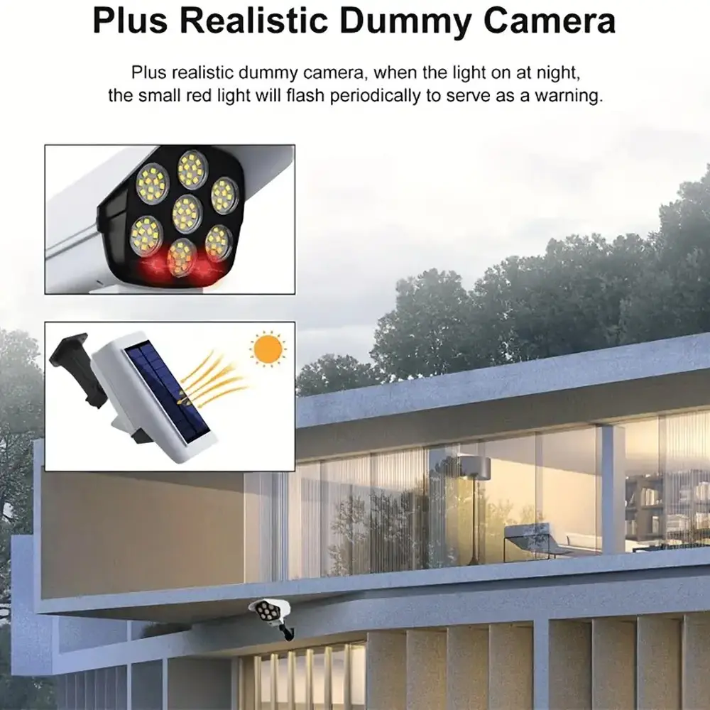 Solar Light Remote Control 77LEDs with 3-Mode Simulation Camera Outdoor Lighting Solution Solar Security Lights Durable and Efficient Design Perfect for Camping and Gardening