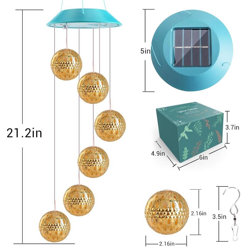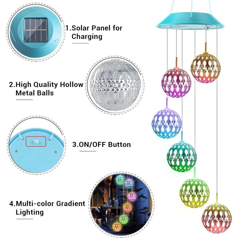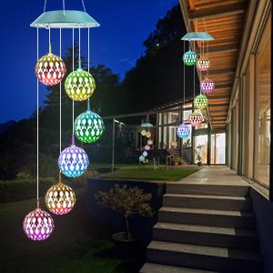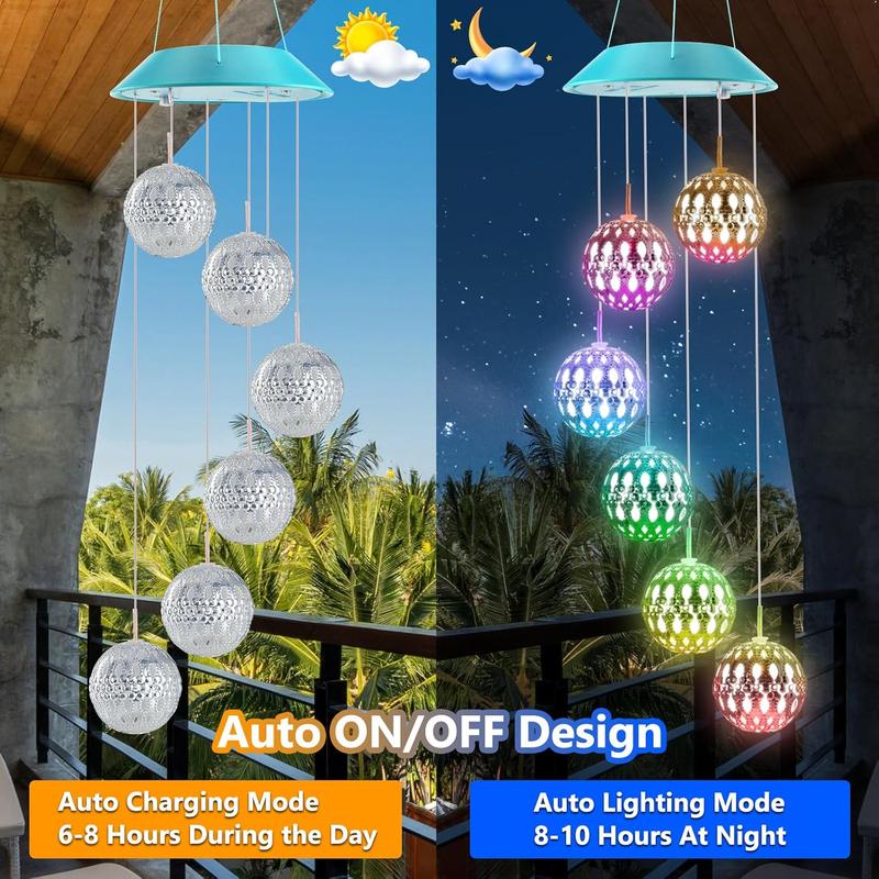 ·🎁Hanging and Mobile Solar Wind Chimes: Come with a hanging hook, the solar metal Christmas Moroccan ball wind chimes are easy to hang in your garden,Christmas tree, yard, lawn, patio, window, roof, front porch, hall, bedroom, party and anywhere you like to decorate.They are portable and mobile for indoor and outdoor decoration.