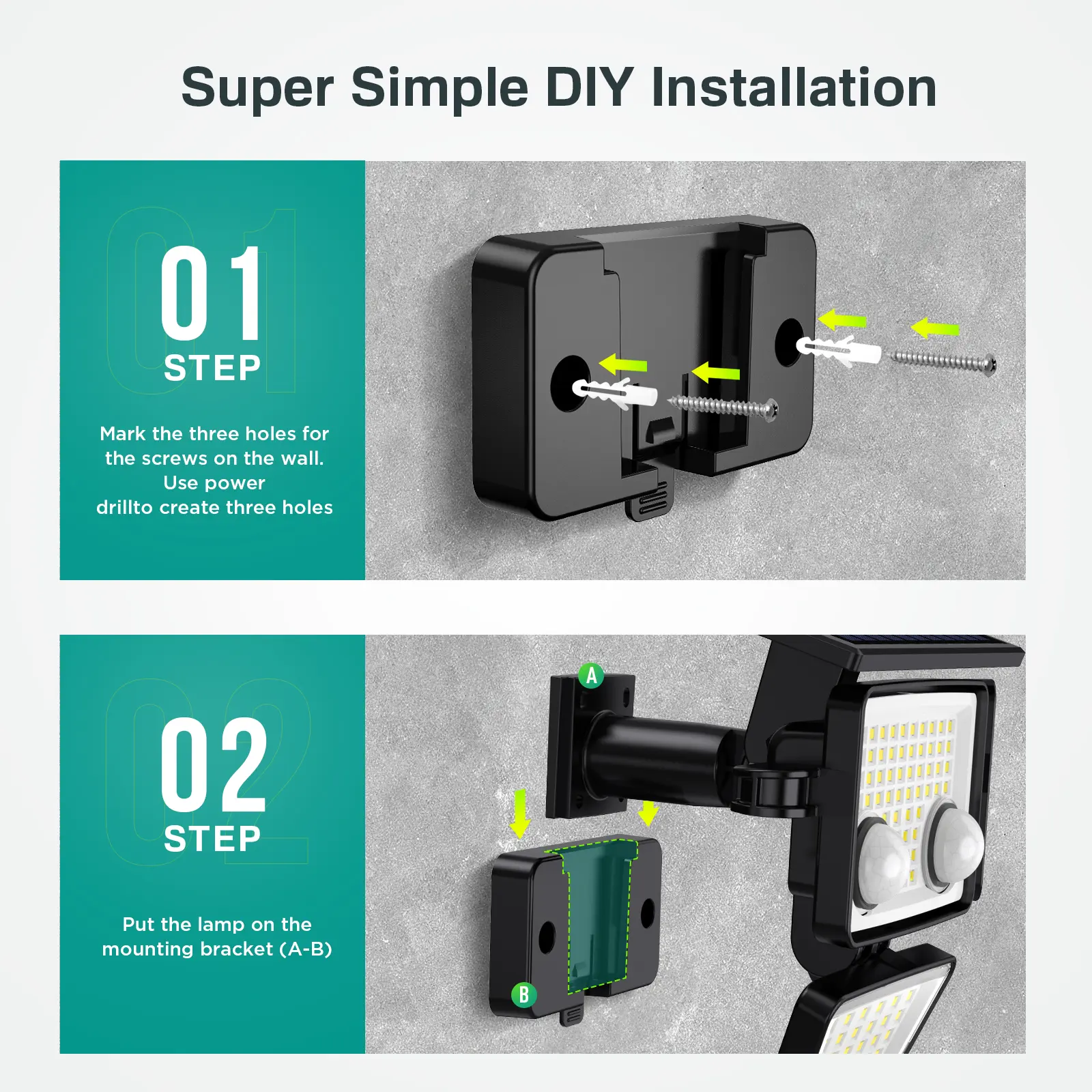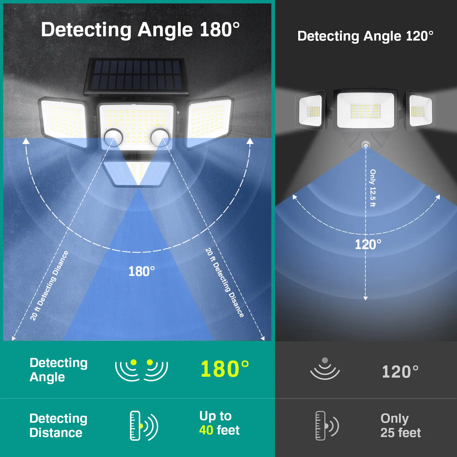 ·【Dual PIR Motion Sensors】: Enhanced motion detection up to 40 feet within a 180-degree range, covering a broader area and providing longer illumination time for security.