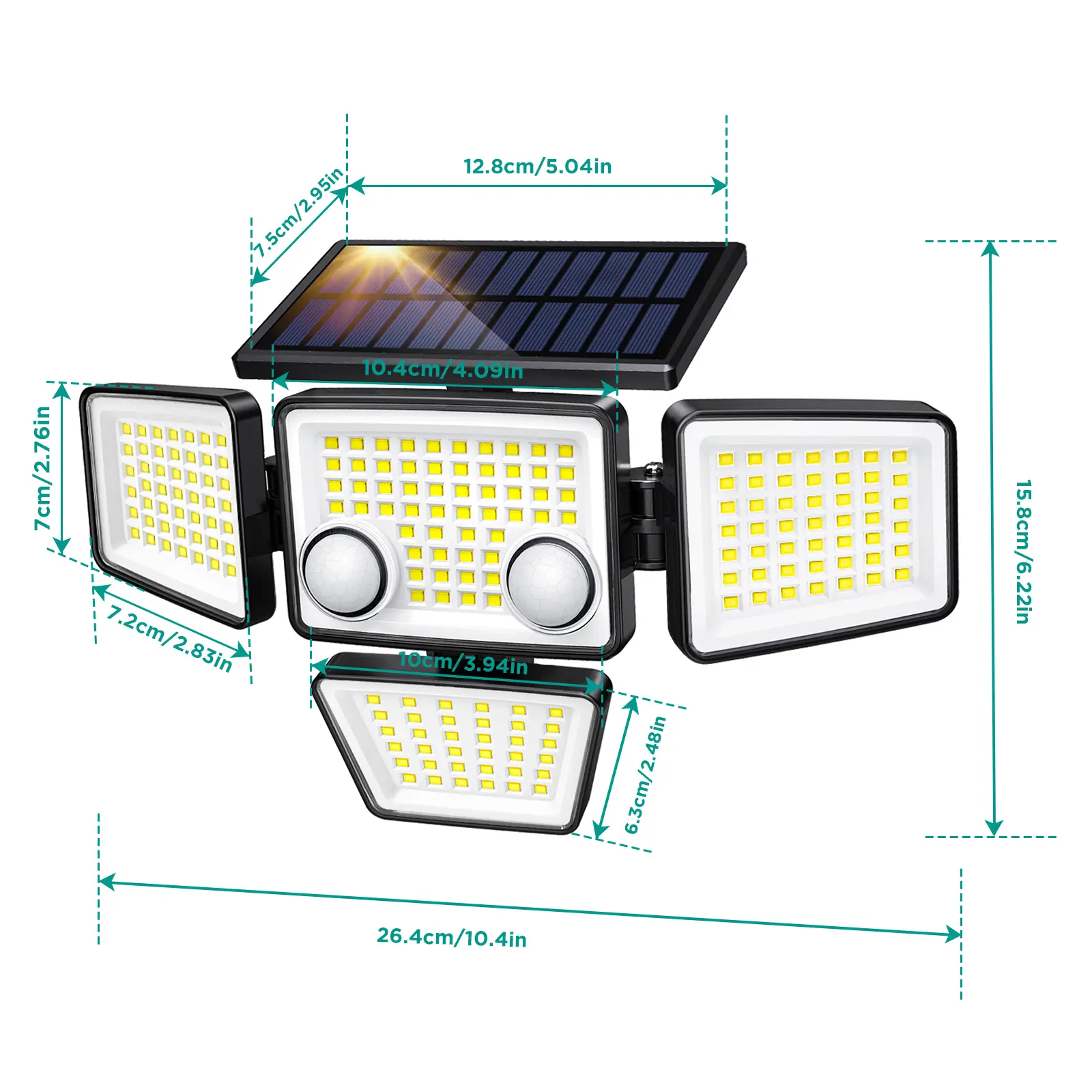 ·【4-Head Design】: Four adjustable heads providing 270-degree wide-angle illumination with a 40ft sensing distance, maximizing illumination and visibility.