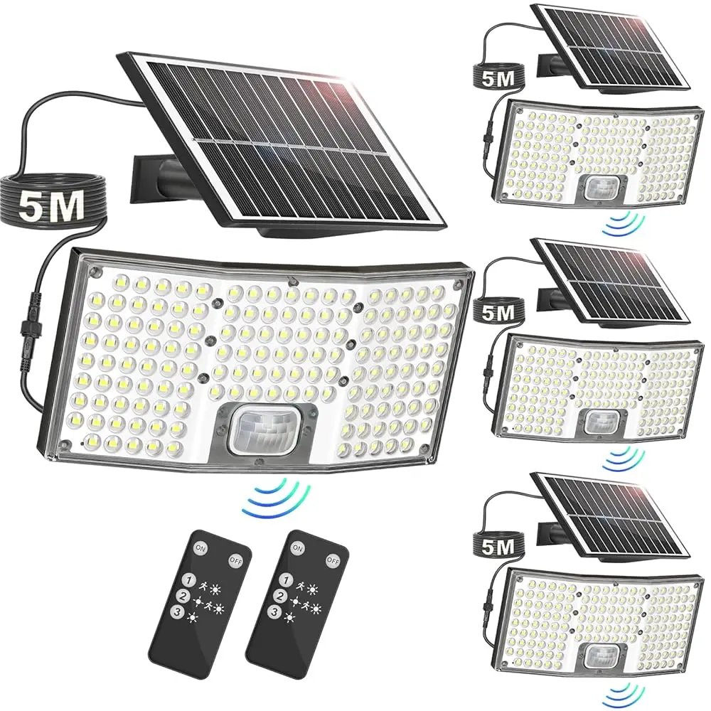 These solar outdoor lights with motion sensor are ideal for providing bright, secure lighting both indoors and outdoors. The separate panel installation and IP65 waterproof rating make them suitable for various weather conditions. The remote control and 16.4ft cable offer convenient operation and installation options.