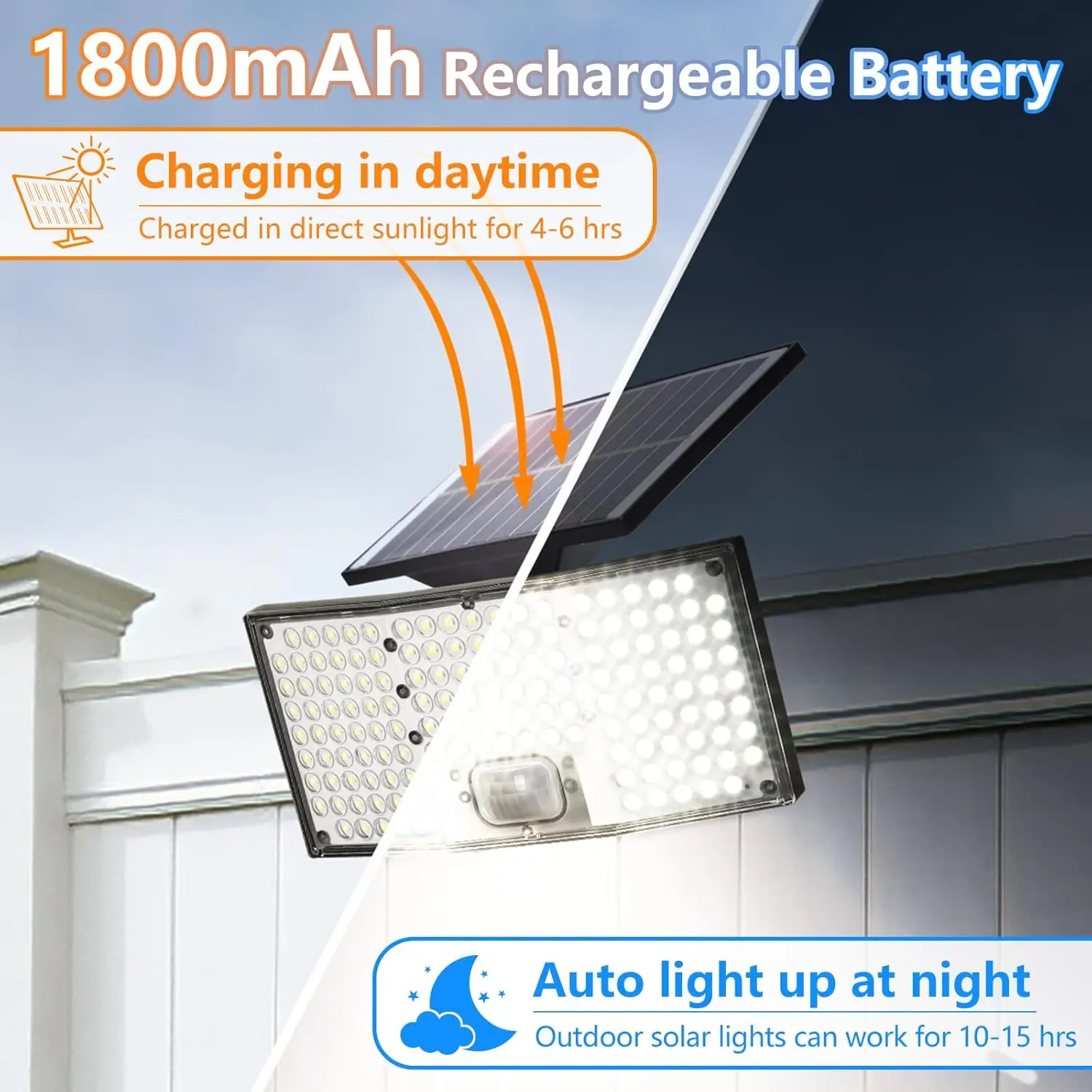 ·4000LM: Provides 4000 lumens of brightness, surpassing traditional outdoor solar lights.