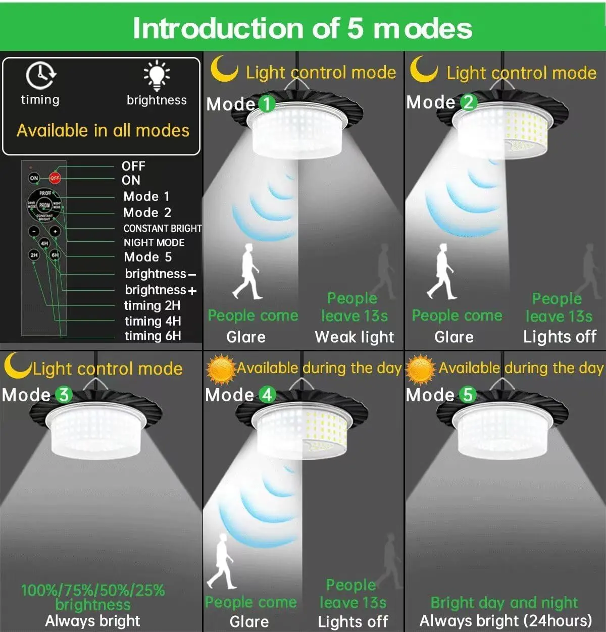 🌟 Working Modes - 5 working modes.