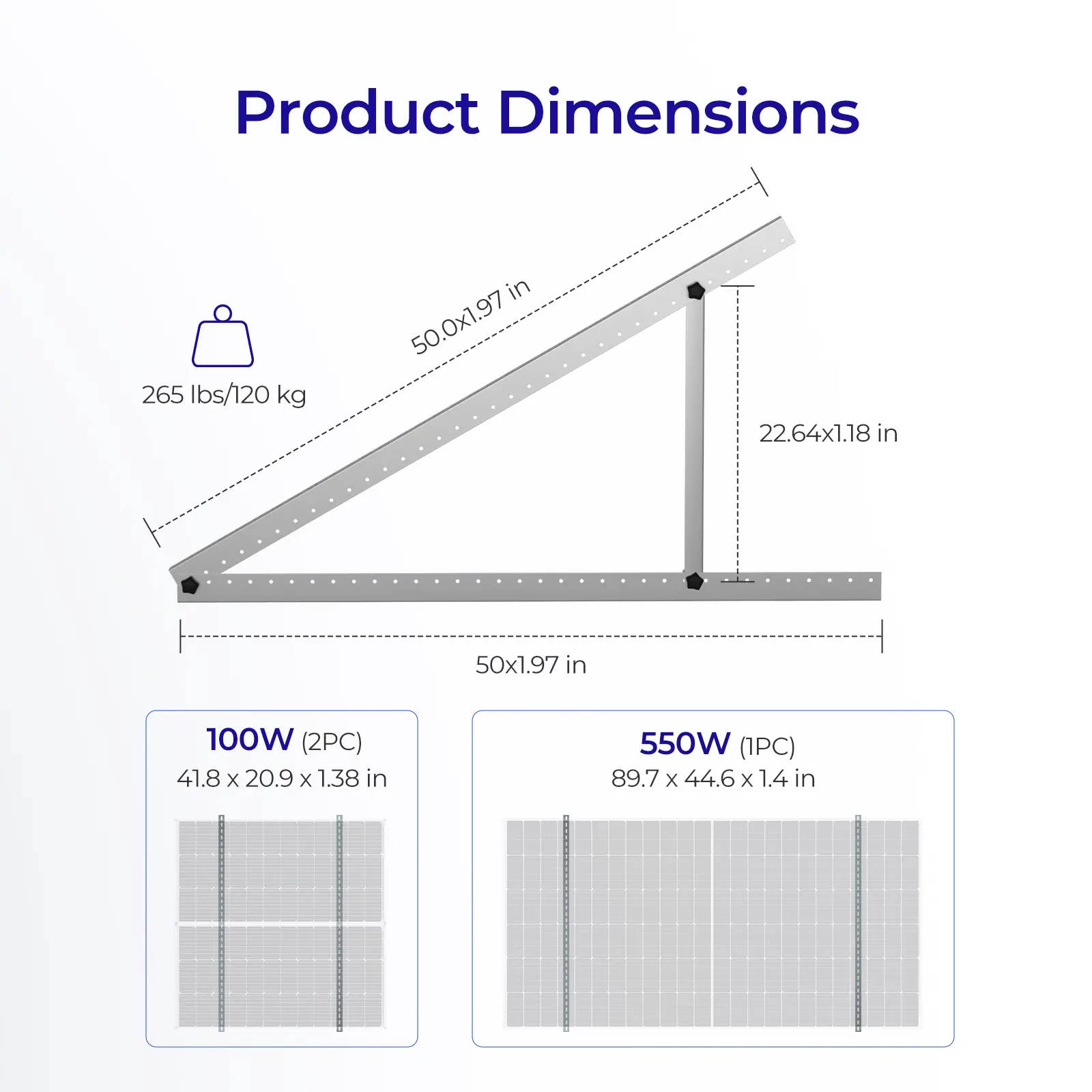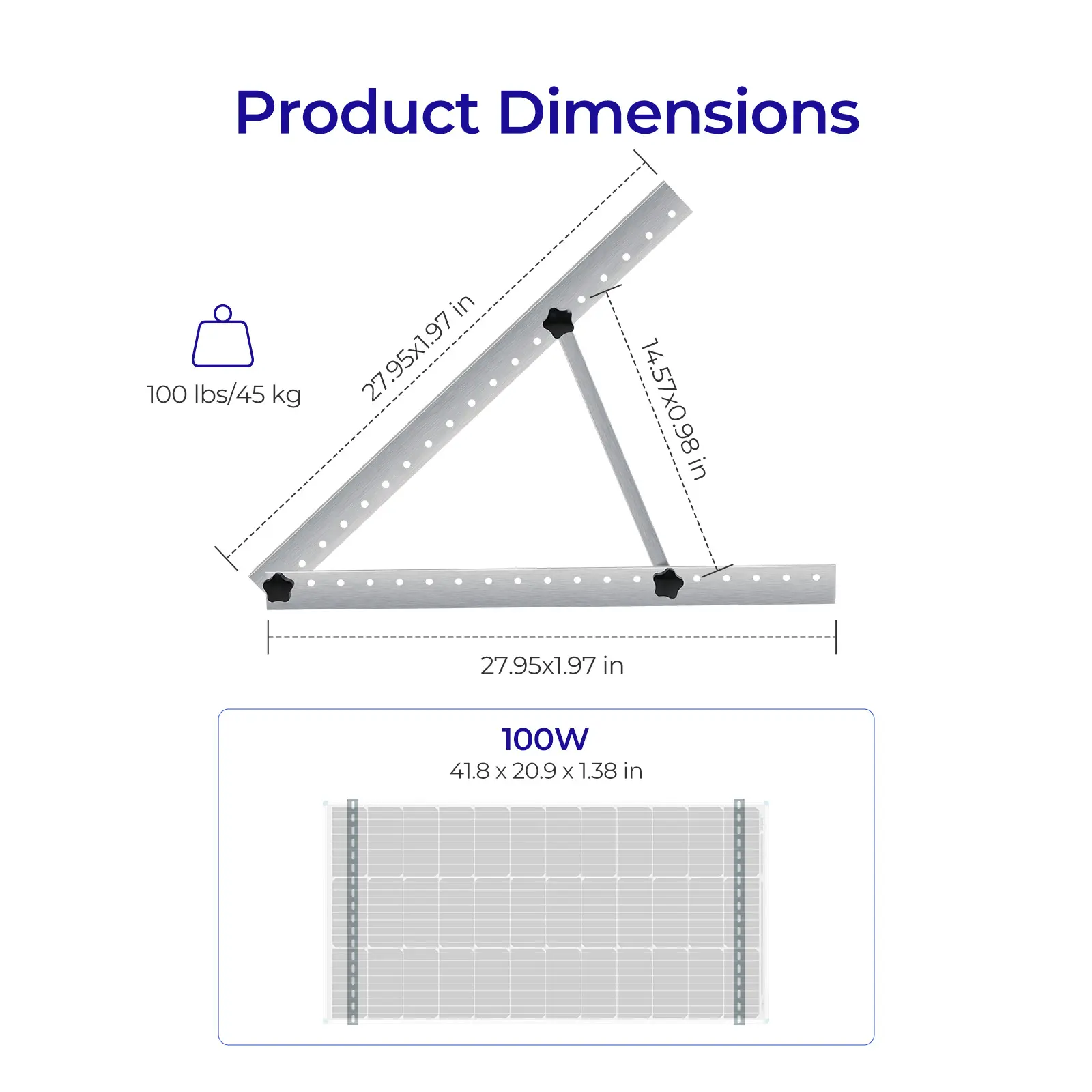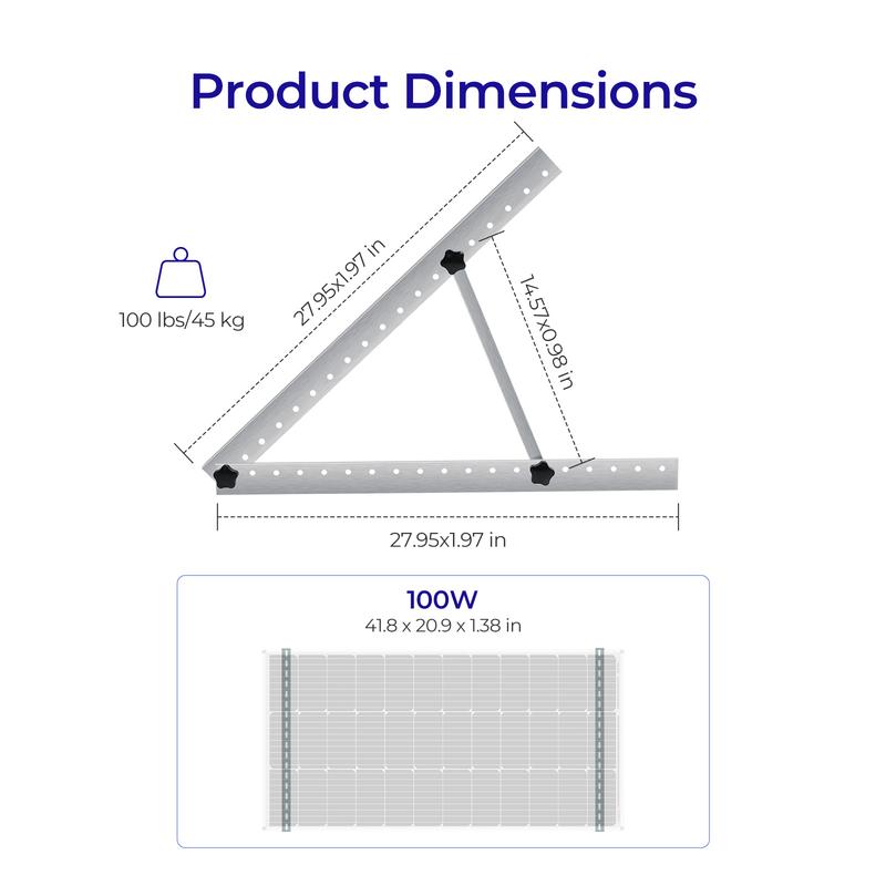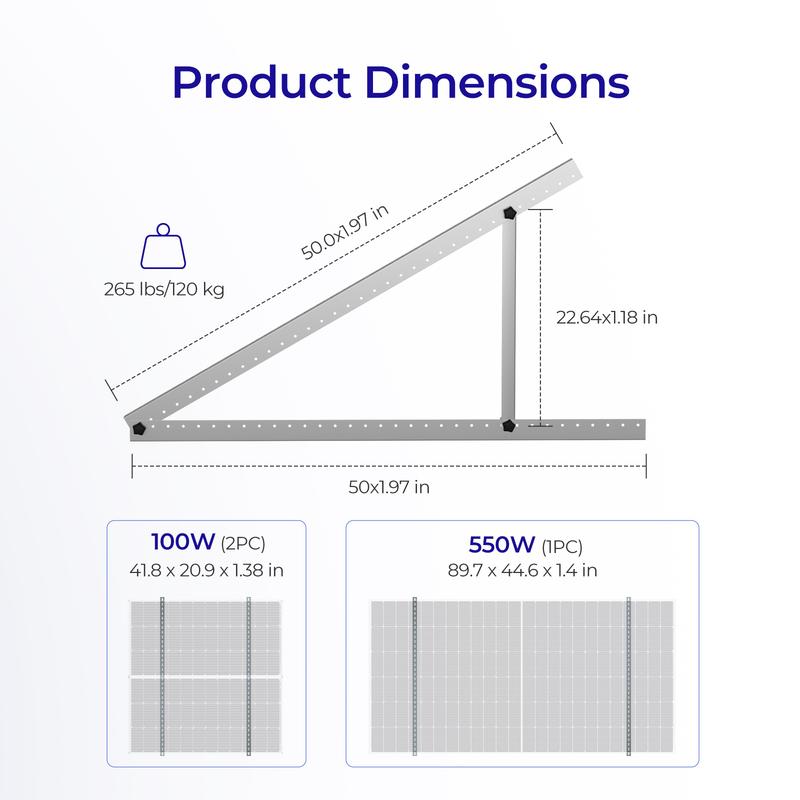 ·The 50-inch TMB bracket can be adapted to Renogy solar panels up to 550W or two 100W Renogy solar panels.