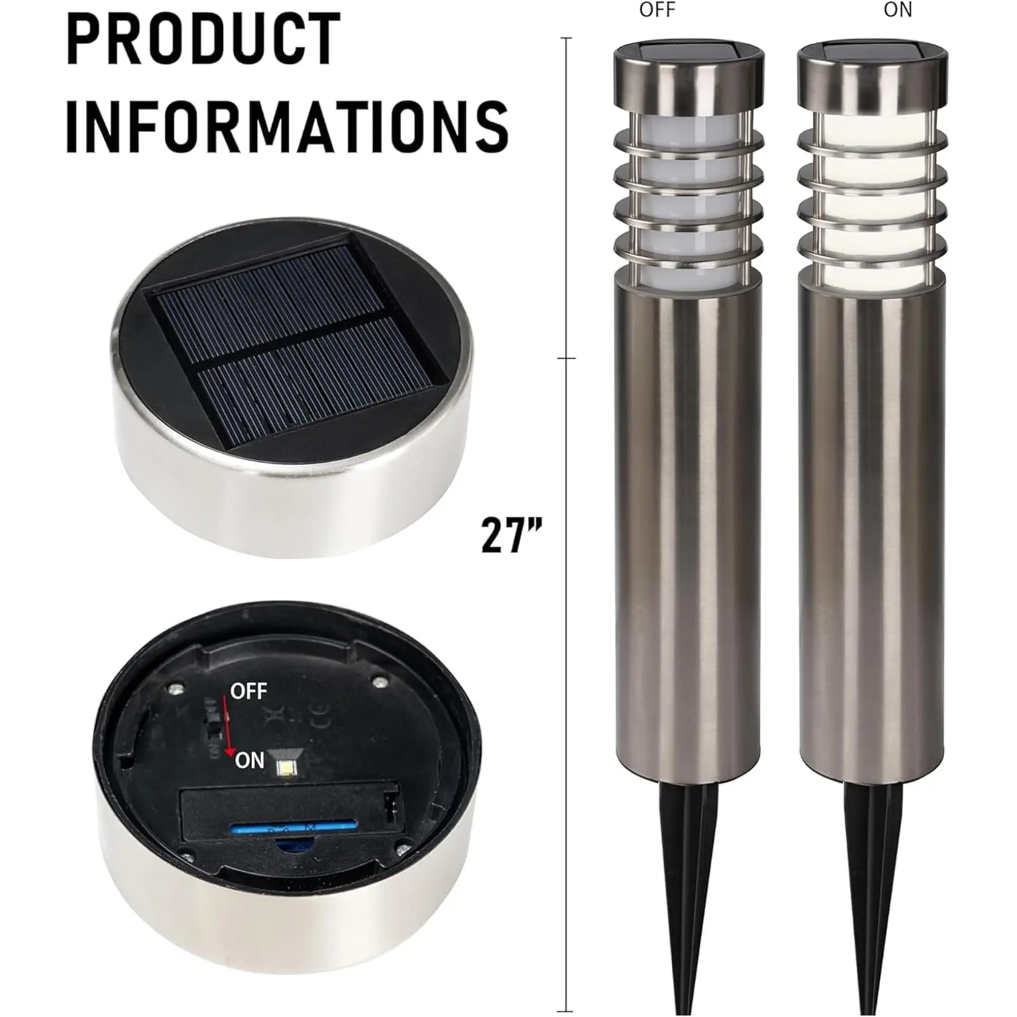 ·Elegant Path Bollard Lights: These outdoor solar lights are designed to add a touch of elegance to your outdoor space. The height of bollard light is 27 Inch. Each bollard light features a bright LED with 20 lumen, providing clear and inviting illumination for walkways, driveways, pathways, patios, yards, and gardens