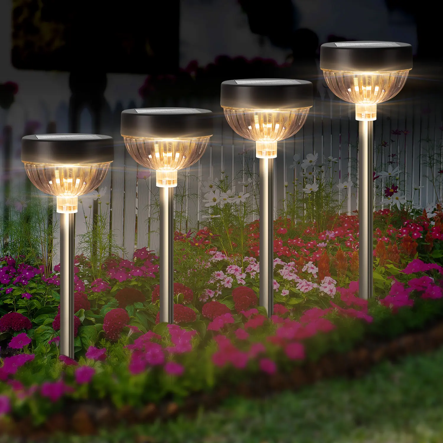·Stainless Steel Materials: Crafted with stainless steel poles and PC lampshades, these outdoor solar garden lights are designed for enduring elegance, making them suitable for various weather conditions.