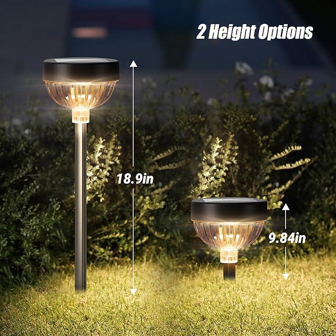 ·Durable and Versatile: The stainless steel poles and PC lampshades provide enduring elegance, making these outdoor solar garden lights suitable for various weather conditions.