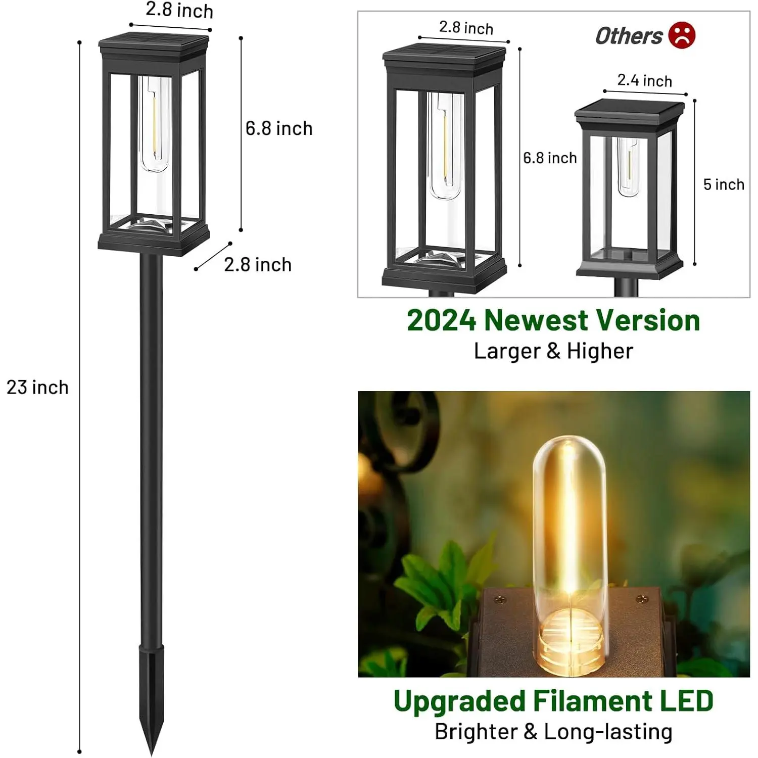 Our solar path lights boast larger, high-quality monocrystalline silicon solar panels. Thanks to the superior conversion rate of these advanced panels, our sidewalk lights outshine other outdoor solar path lights in terms of charging speed and performance.