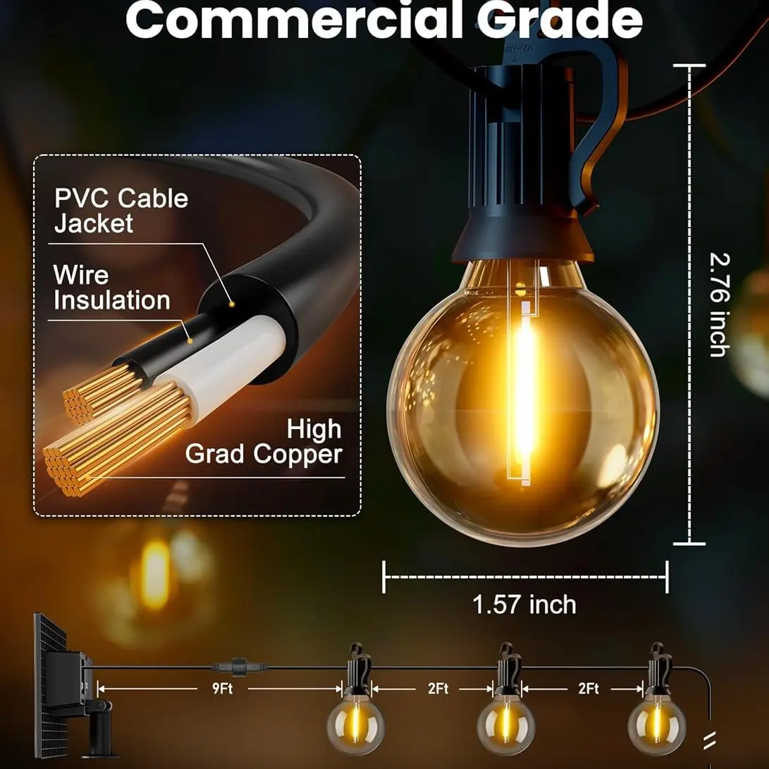 Ollny Outdoor String Lights bring a touch of elegance to any outdoor area. These waterproof connectable hanging lights feature Edison and spare LED bulbs. Perfect for patio, backyard, garden, camping, or porch decor. Simply plug them in for instant lighting. Enhance your space with these versatile lights.