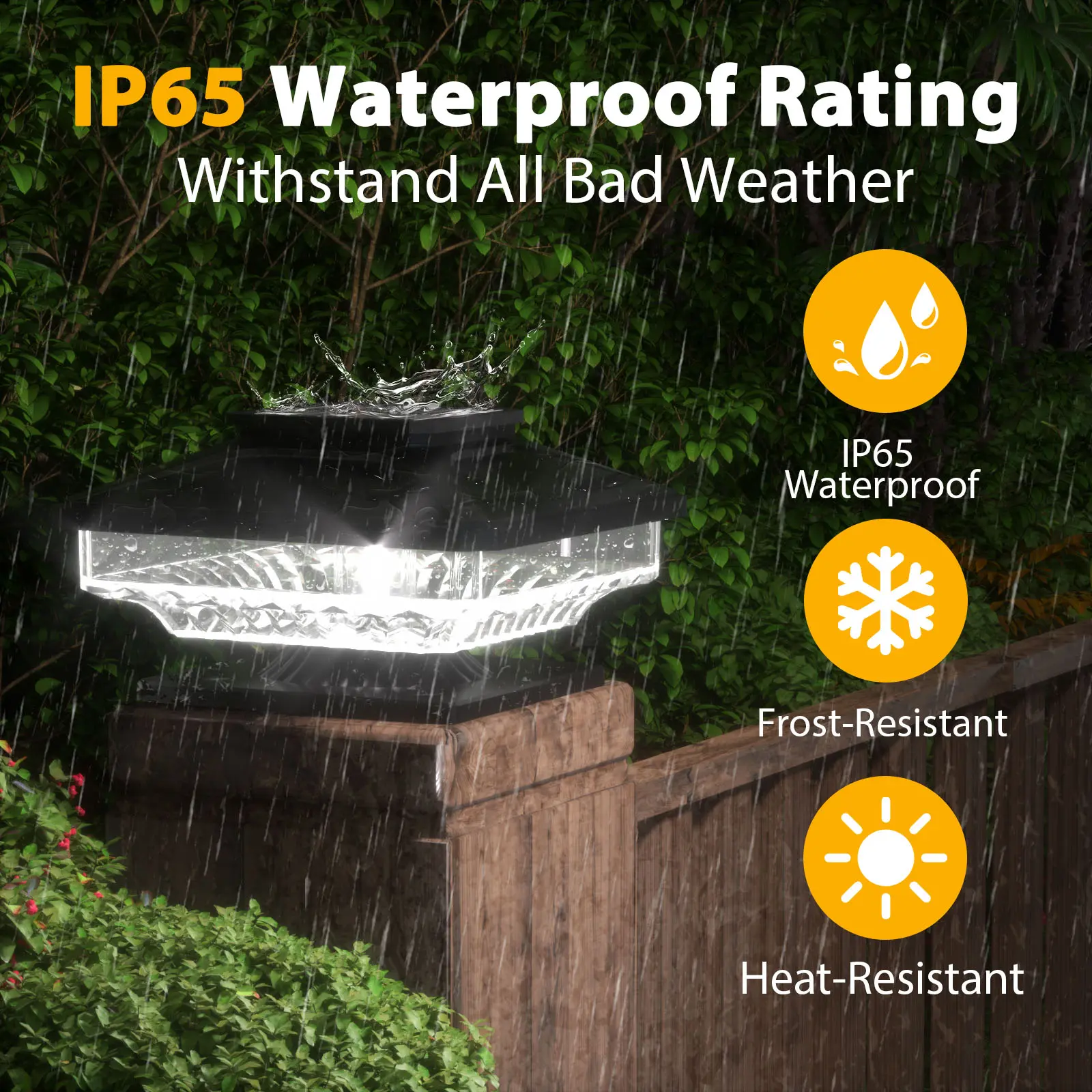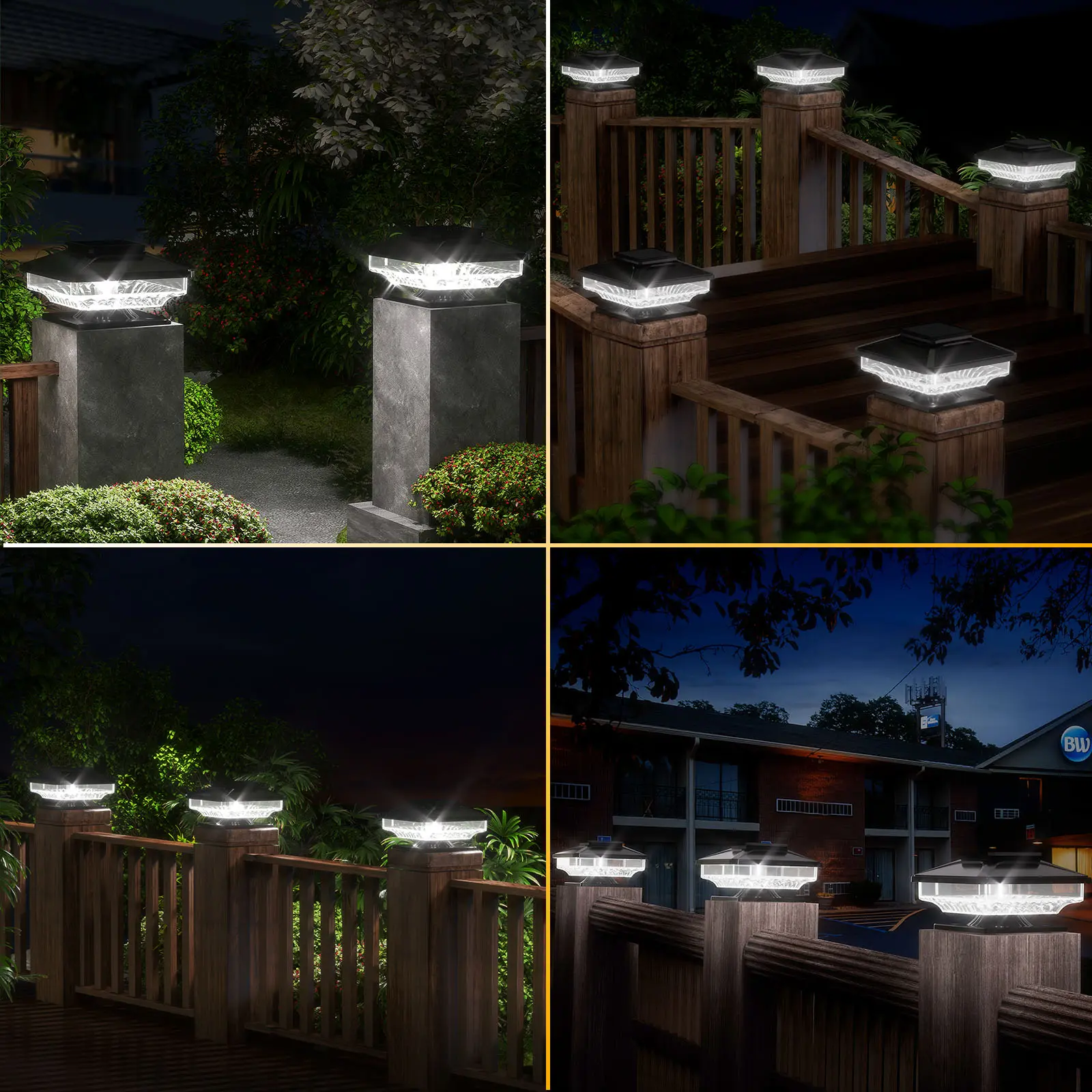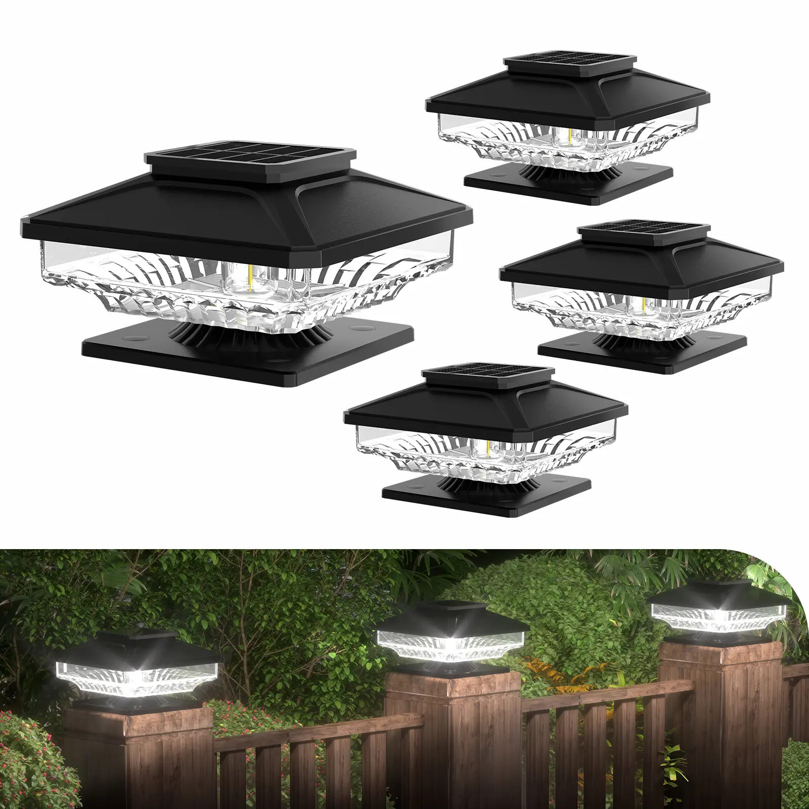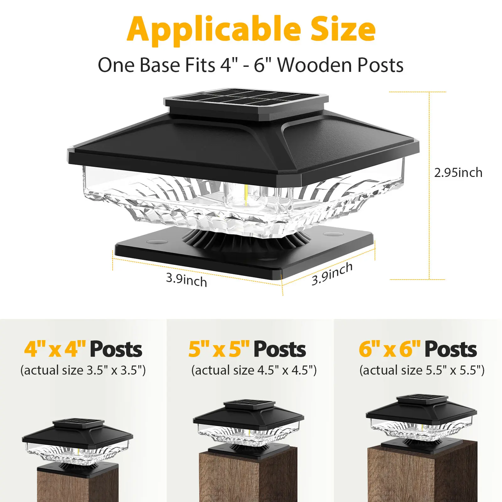 【Quick & Easy Installation】Our outdoor solar post lights are compatible with 4"x4" to 6"x 6" wooden posts. No wiring required, Simply mount the solar lights for fence posts using the included mounting screws on your fence post.