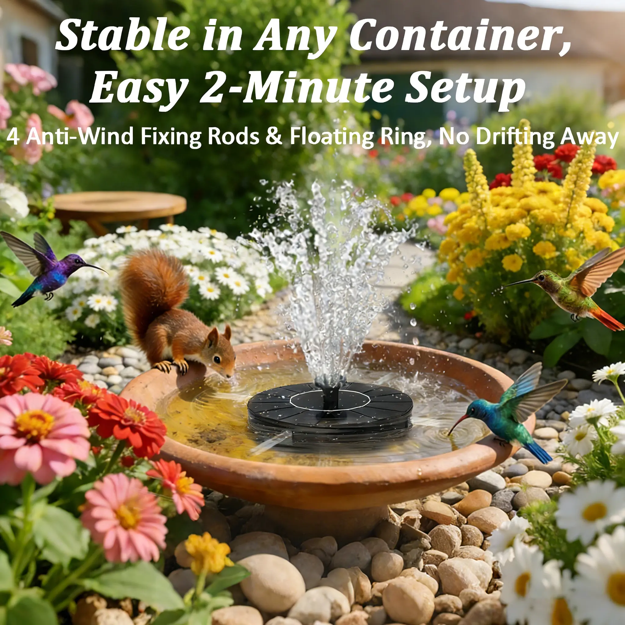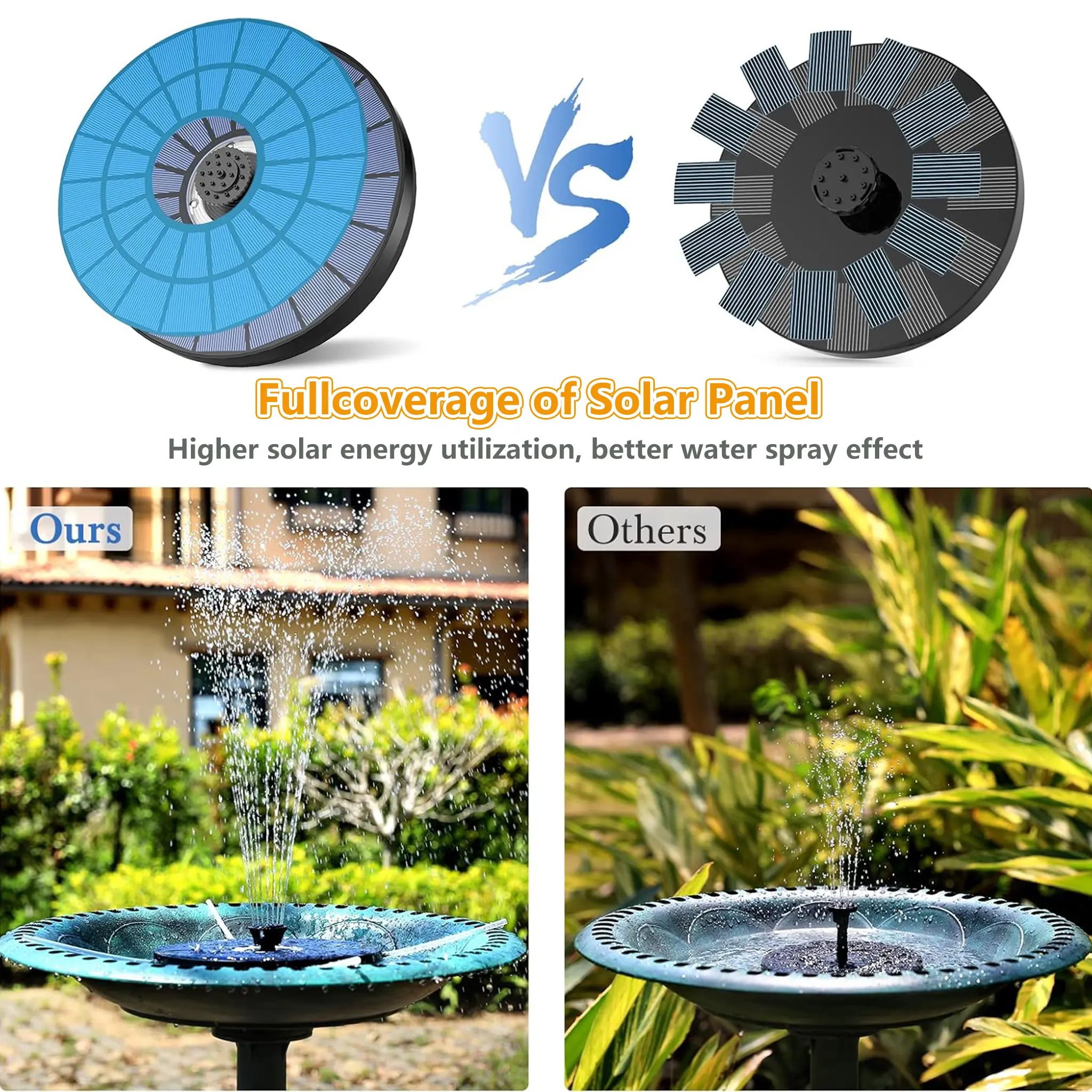 ·【7 Patterned Nozzles】Solar Powered Fountain for water feature is equipped with 7 interchangeable nozzles. Each nozzle has its own jet height and jet shape. This allows you to enjoy a variety of water patterns. You can also change the nozzles to adjust the height and avoid overflowing the planter.
