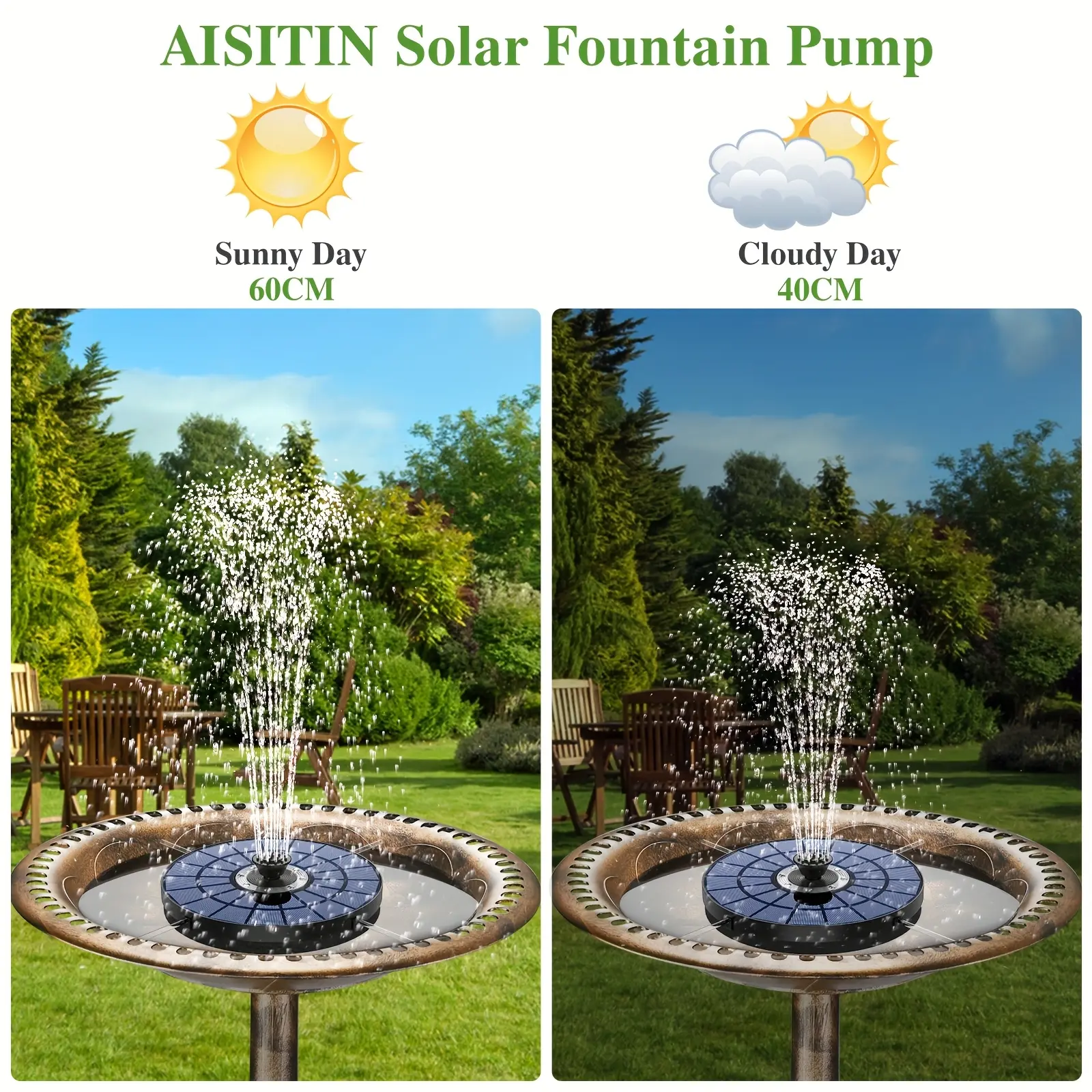 ·【Diversified 5.5w solar pond pump】AISITIN 5.5w solar fountain with lights and battery uses a high-tech solar chip that powerfully and effectively absorbs solar energy for extra-long operation. It works automatically in direct sunlight and takes only 3 seconds when placed in water. Simple and efficient to operate, it will add a touch of fun to your garden.