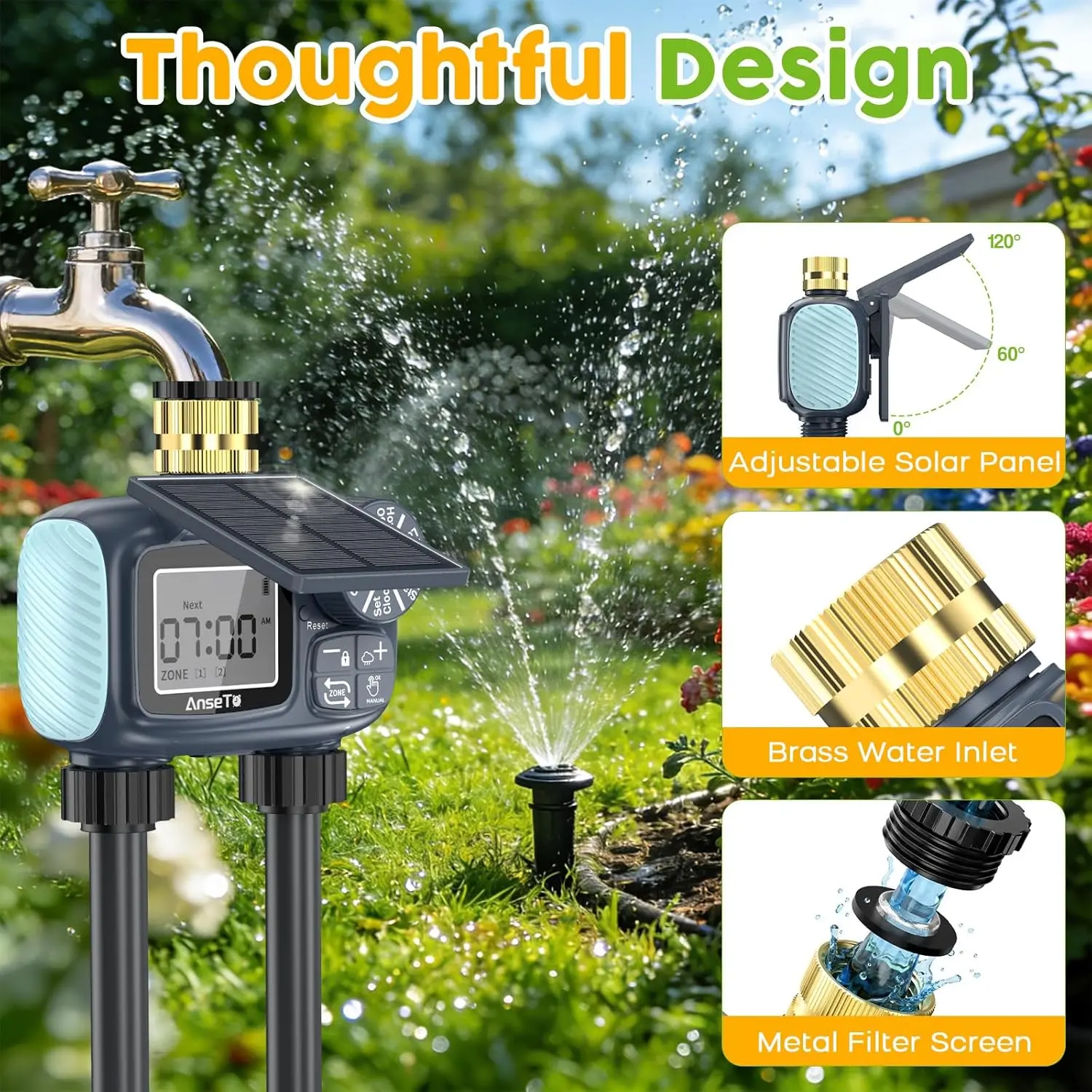 ·【Adjustable Solar Panels & Efficient Charging】 You can easily switch to the optimal angle (30°, 60°, 90°, and 120°) depending on the sun's position at different times of day or season to ensure maximum sunlight absorption which ensures stable continuous operation of the sprinkler timer for months even in low-light environments !