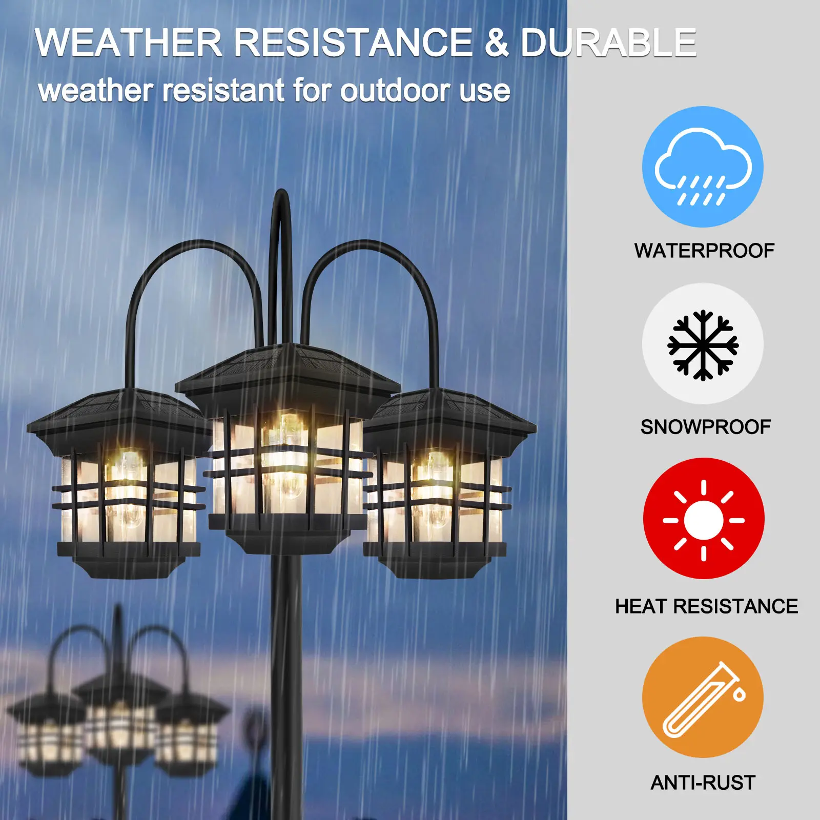 ·Weather resistant: crafted of anti-rust die-cast aluminum, the solar post lamp can withstand any weather conditions. It is IP44 waterproof rated, allowing you not to worry about rain, snow, wind, and frost.