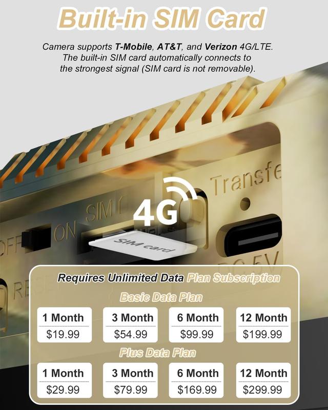 *Note: Each camera comes with a SIM card; cellular data requires payment. The app supports purchasing limited-time unlimited 4G data plans (new users enjoy a free 7-day trial).