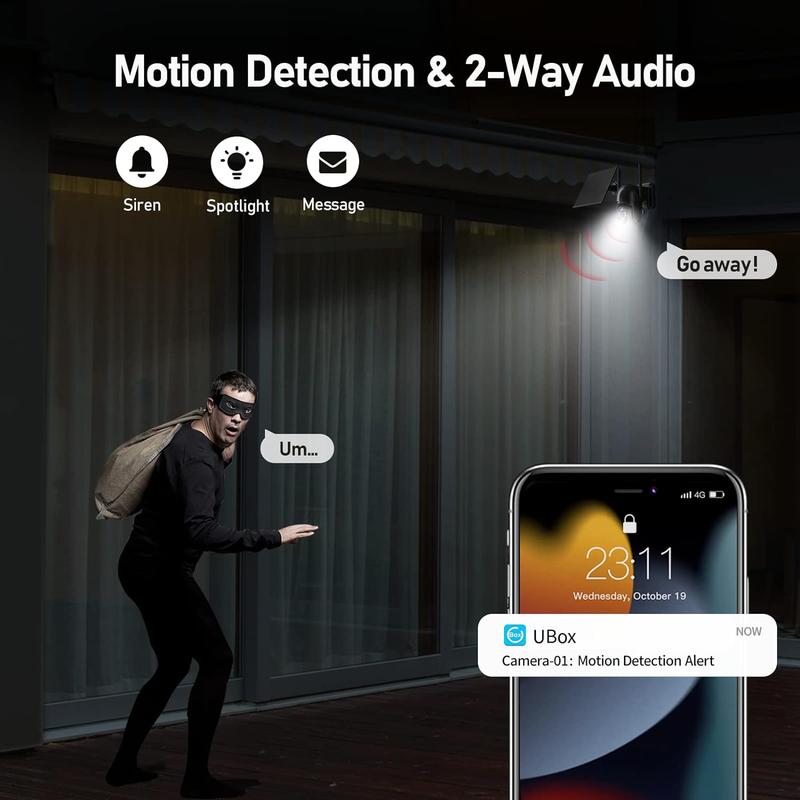 ·[2K Live Video and Remote Access]:With 2K Resolution, 355 ° pan and 110 ° tilt, the jobsite camera captures 2K live videos day and night, clearly in detail. Through a 4G network, even if you are out of your home, you can remotely access this no wifi security camera outdoors via your phone app to view your remote properties and ensure their security.