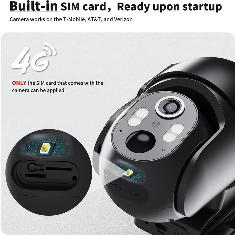 ·[Unlimited Data Plan&Built-in SIM Card]:The built-in SIM card of the Cellular security camera can effectively identify the signal strength from various communication providers (Verizon, T-Mobile, and AT&T), ensuring device compatibility and stability.It provides 300MB of trial data (it can be used once the camera is activated.)and an unlimited data package.When the trial data runs out, you can renew the unlimited data.No more worries about running out of data!