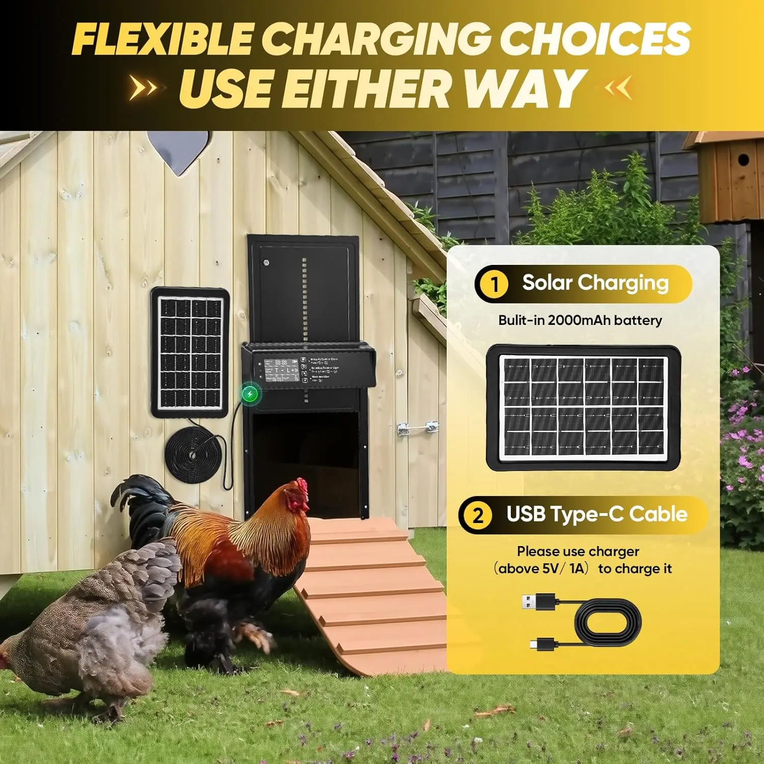5. Solar-Powered Automatic Chicken Coop Door, Timer Function & Light Sensor, 4 Modes LCD Display, Anti-Collision Rainproof Aluminum Alloy Gate