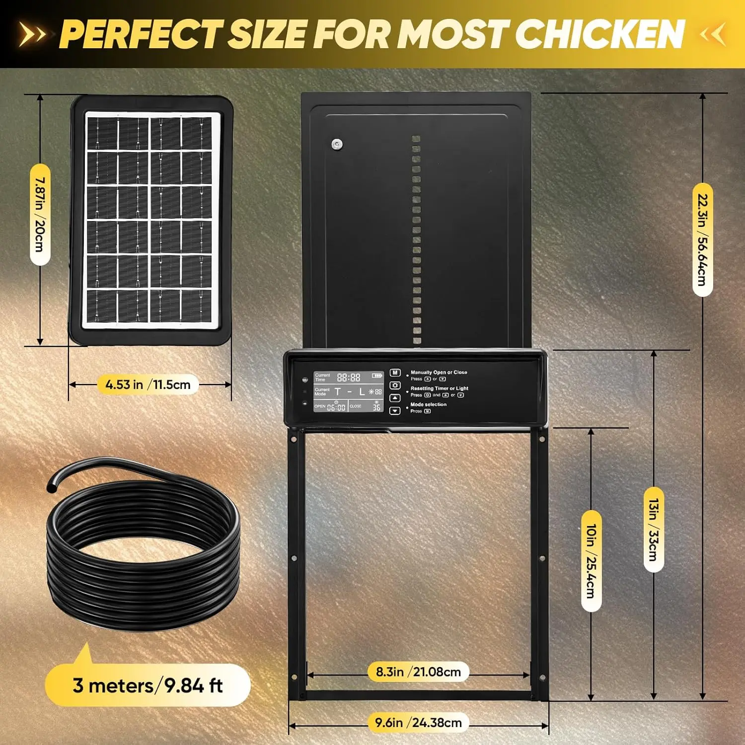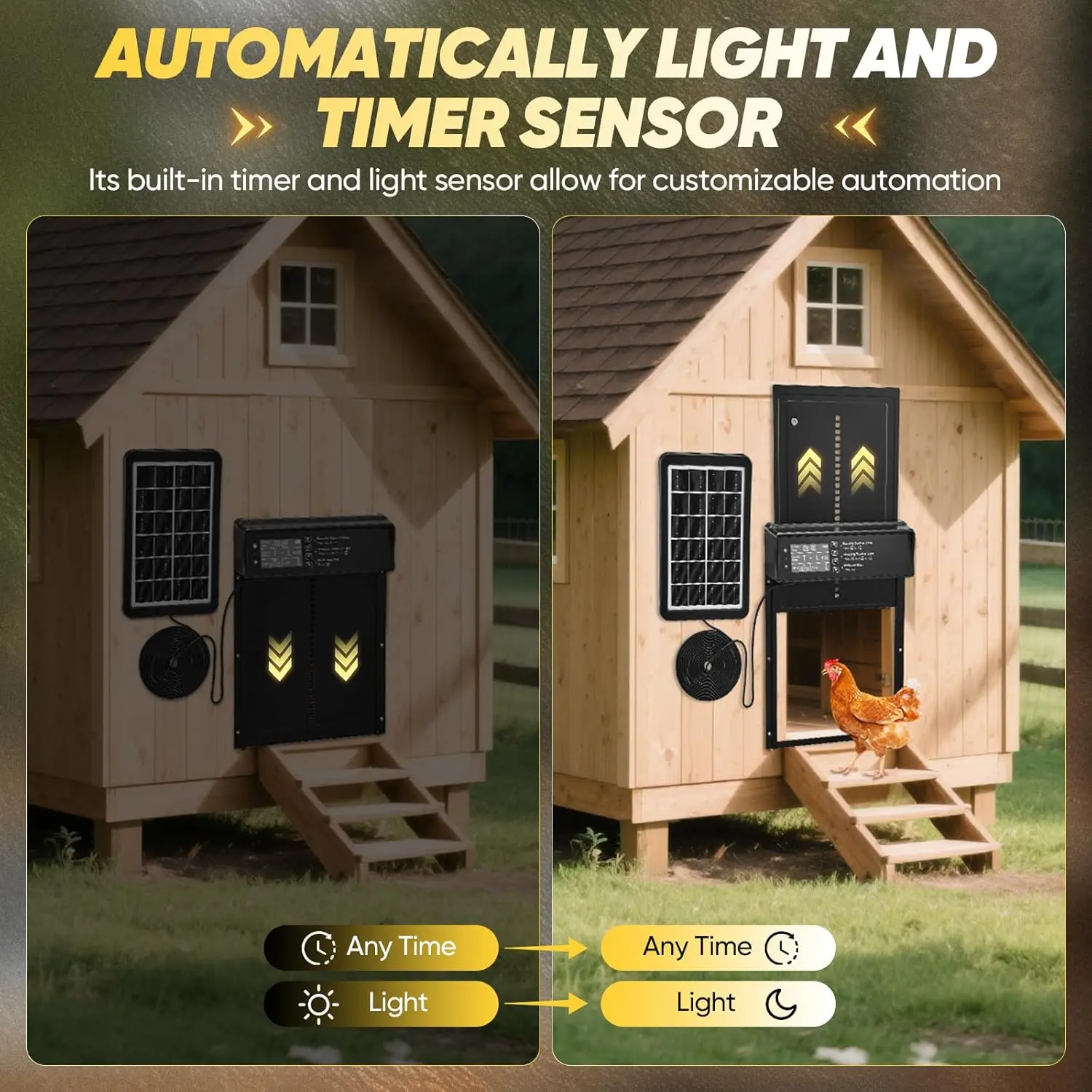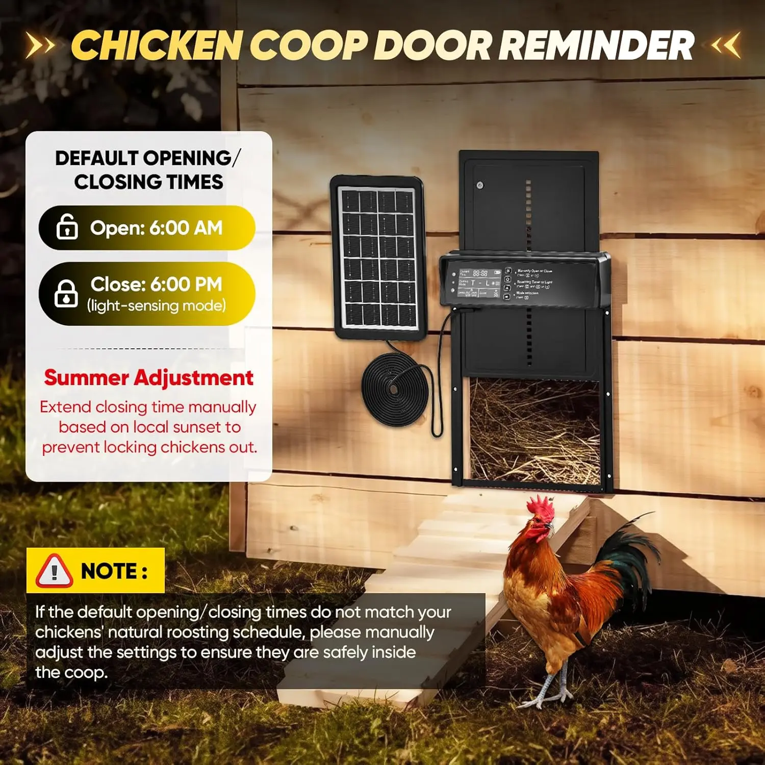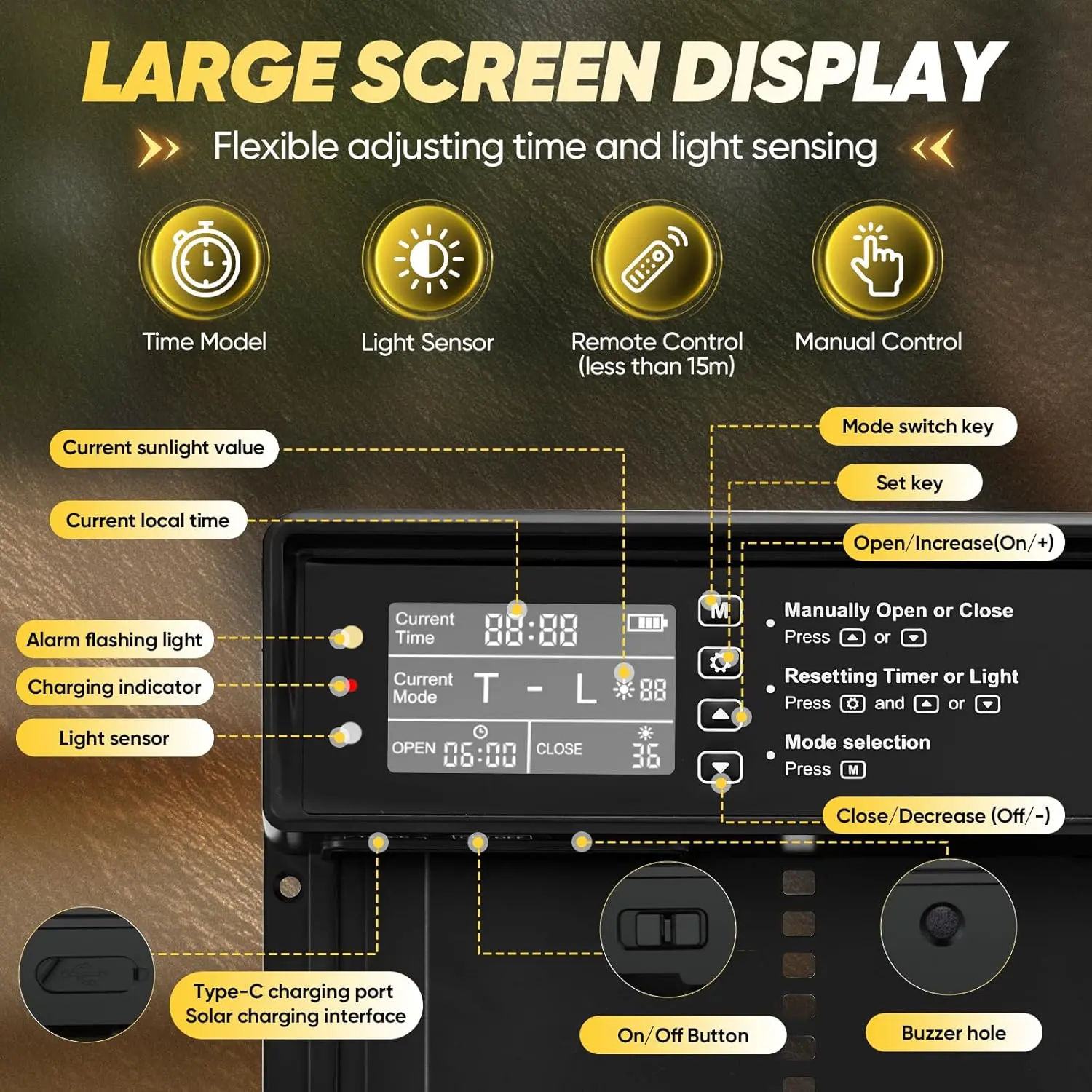 Solar-Powered Automatic Chicken Coop Door, Timer Function & Light Sensor, 4 Modes LCD Display, Anti-Collision Rainproof Aluminum Alloy Gate