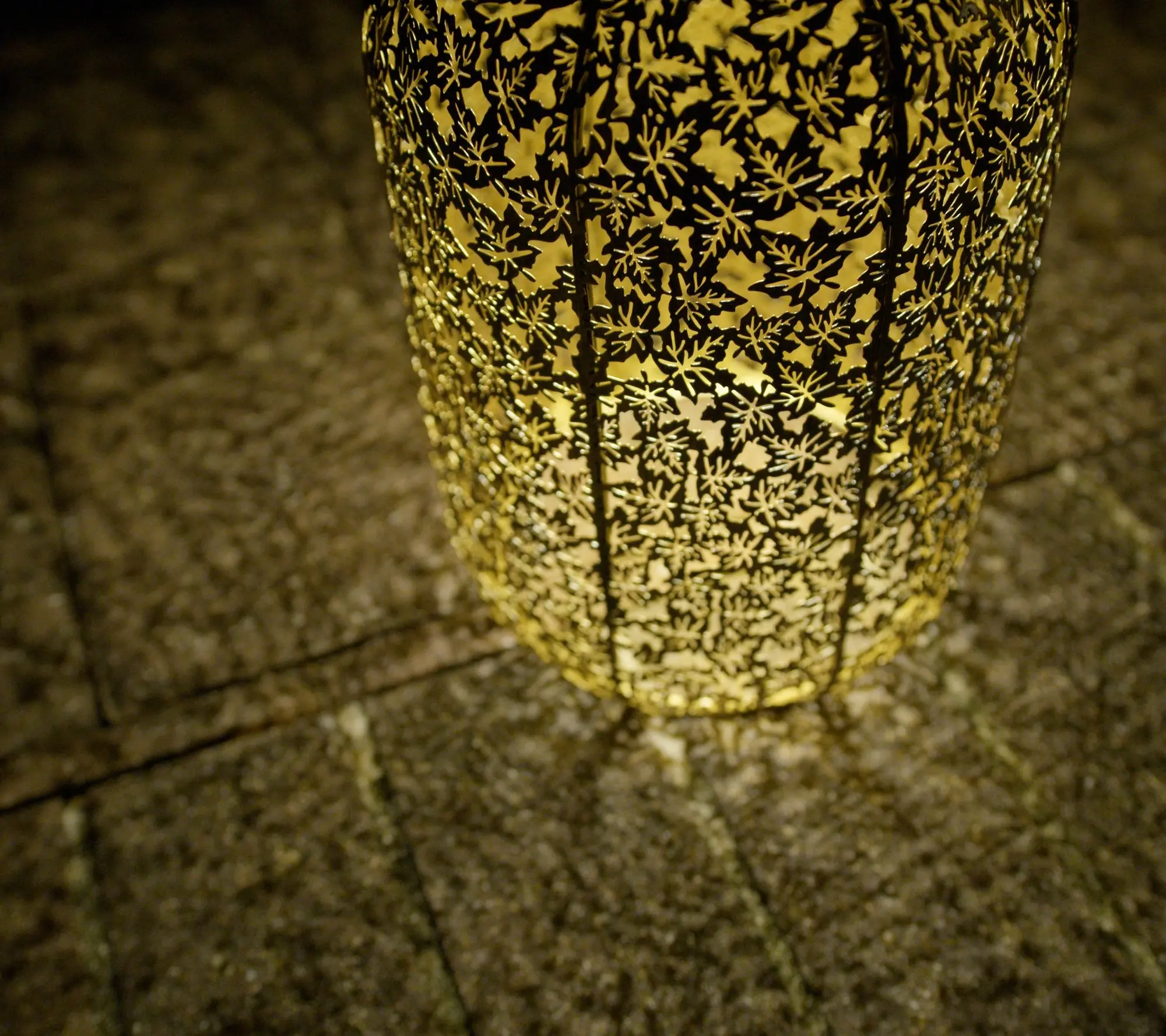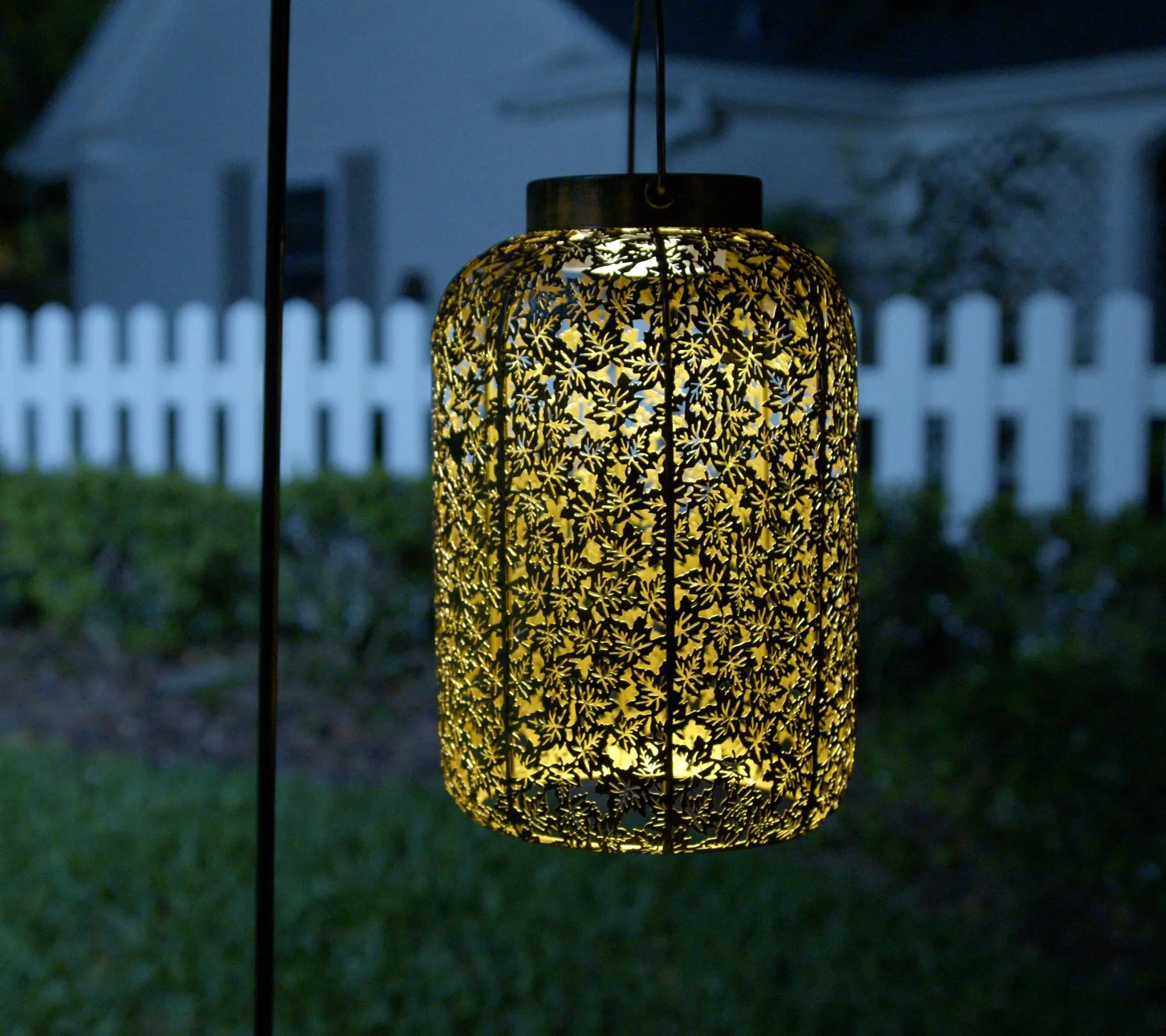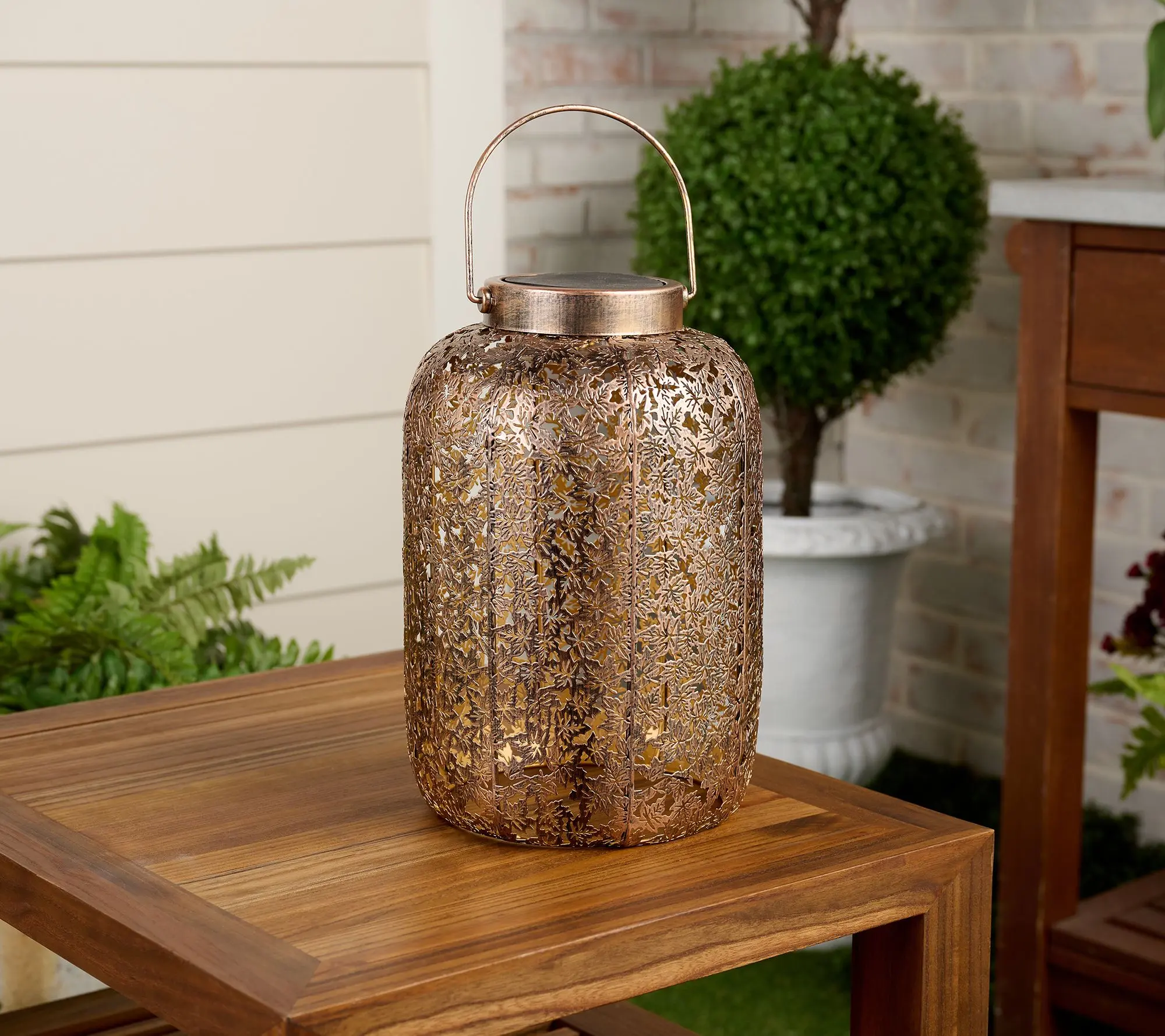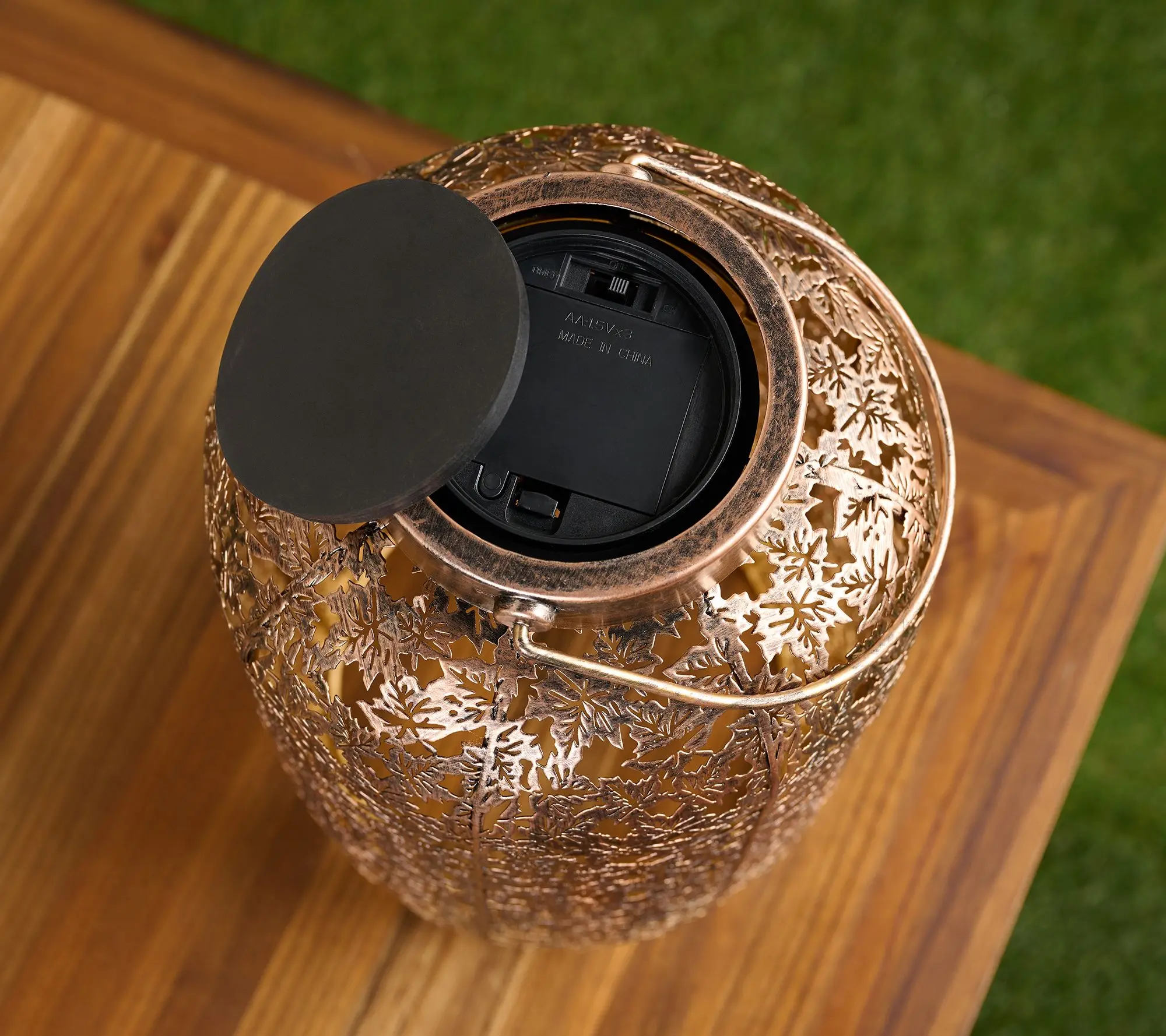 Enjoy a gentle autumnal glow as dusk arrives with this illuminated fall leaves lantern. The bronze finish adds depth to your decor by day, while the solar power and battery operation combine for delightful, patterned light after dark -- bringing harvest charm to any table, garden path, or porch setting. From Girl Next Door.