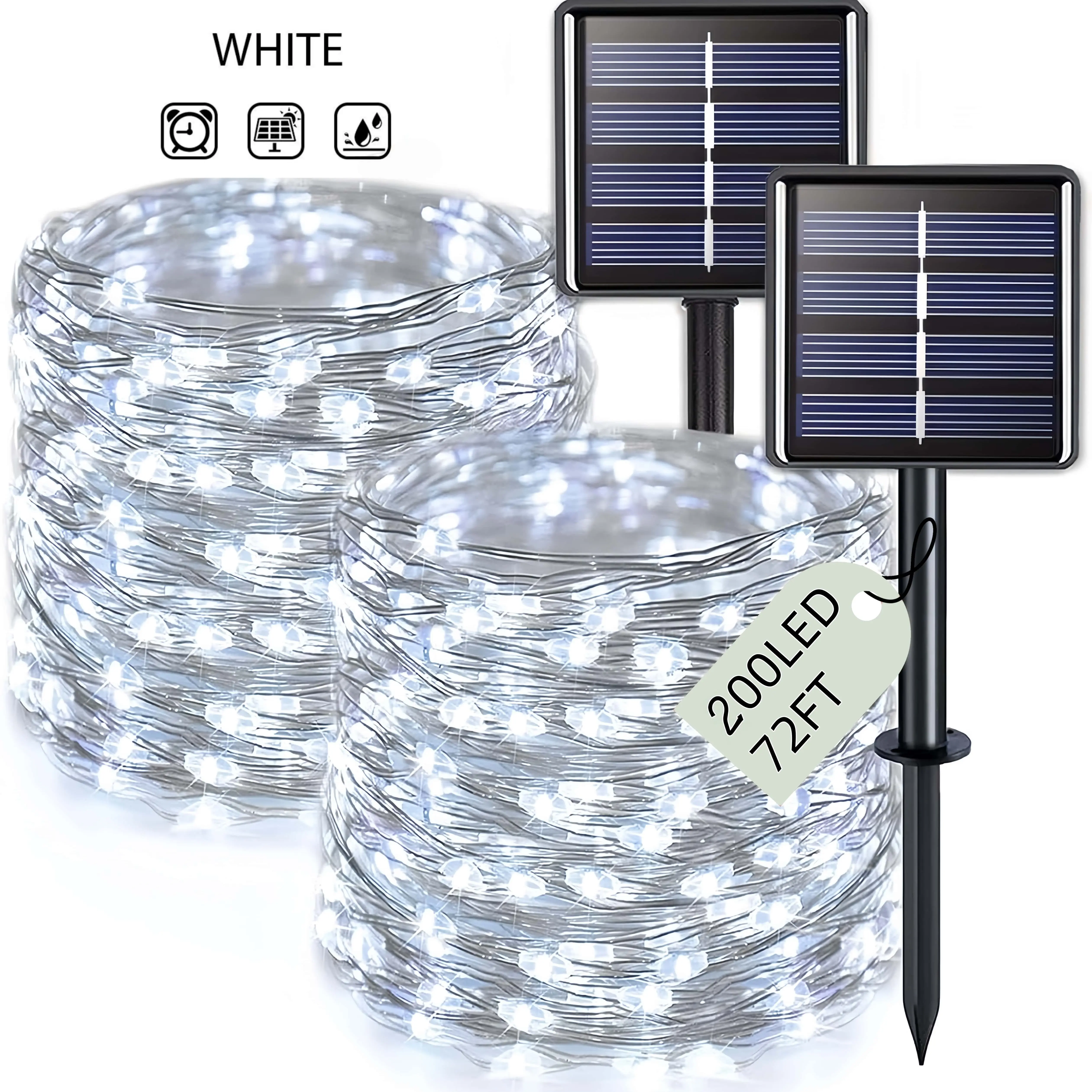 ✨ 2-Pack Solar-Powered Copper Wire String Lights bring a touch of magic to any setting. With 72 feet (200 LEDs) of string lights, you get a vibrant display. Perfect for outdoor gardens, parties, weddings, courtyards, Halloween, Christmas, and camping. These fairy lights offer 8 modes for versatile lighting options. Transform your space effortlessly with this essential set.