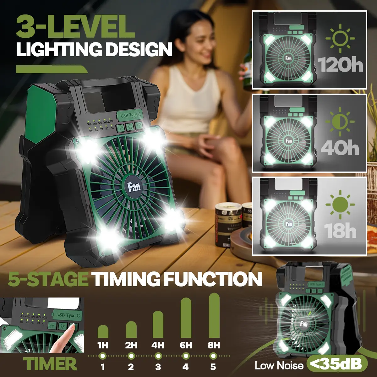 ·Portable & Multi-Use – Compact, lightweight, and perfect for camping, hiking, power outages, or as a desk fan.